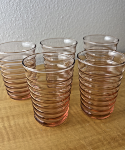 Vintage Pink Depression Glass Rib Optic Water Juice Tumblers Set of 5