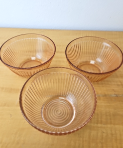 Vintage Pink Depression Glass Bowl 5 1/4″ set of 3