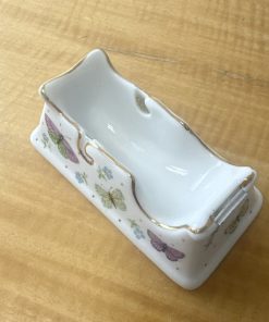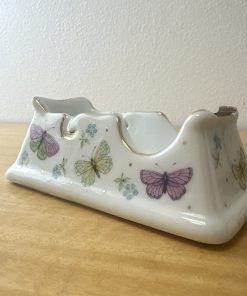 Vintage Porcelain Tape Dispenser with Gold Trim Butterfly Flowers