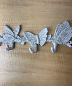 Vintage Wall Hanging Hooks Butterfly 15″ Long Charcoal Gray Dragonfly Cast Iron