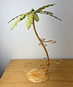 Vintage Under Palm Tree Art Metal Bottle Decanter & Glass Holder