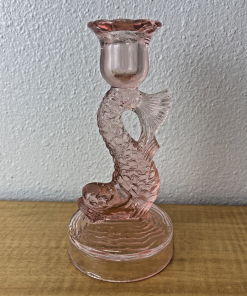 Vintage Tiffin Pink Depression Glass Dolphin Koi Fish Candlestick Holder