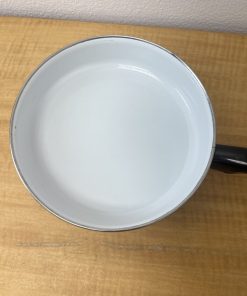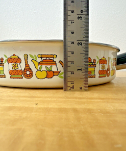 Vtg Enamelware MCM 70’s Skillet Frying Pan With Kitchenware Fruit Flowers 8.5in