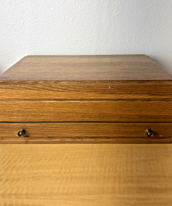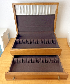 Vintage Wooden Silverware Flatware Brown Chest Box with Drawer