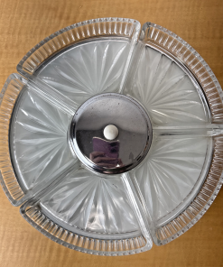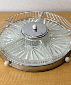 VTG MCM Chrome Rotating Lazy Susan with 5 Glass Serving Sections, Hors d’Oeuvres