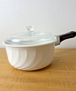 ACROFLAM FRANCE WHITE SWIRL 7″ INCHSAUCEPAN WITH LID & DETACHABLE HANDLE