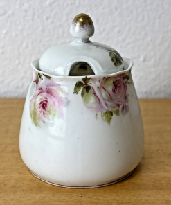 Antique Silesia Alice Porcelain Sugar Bowl / Jam Jar Pink Floral Design