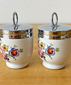 Vintage Royal Worcester Bone China Rose Pattern Egg Coddlers Set of 2