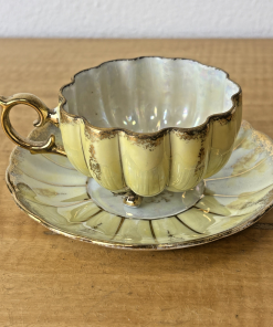 Vintage Royal Sealy China Green & Gold Footed Tea Cup & Saucer Japan Iridescent