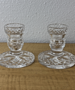 WATERFORD 2pc CANDLESTICKS CUT Lead CRYSTAL Glass Candle Holder