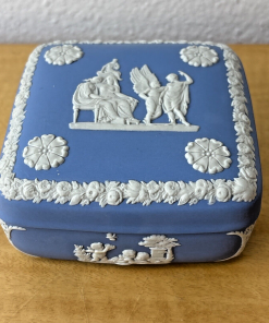 Wedgwood Miniature Queen’s Ware Blue on White Embossed Pitcher