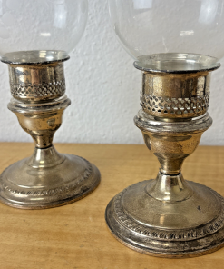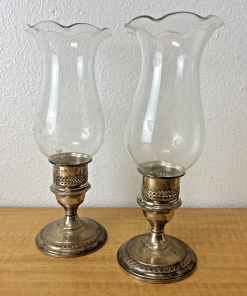 Weighted Sterling Candle Holder Etched Hurricane Glass Set of 2