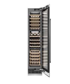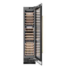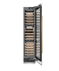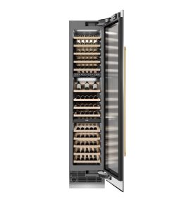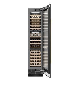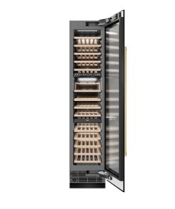ZLINE Autograph Edition 18 in. 9.0 cu. ft. Triple Zone 68 Bottle Panel Ready Right Hinge Column Wine Cooler with Polished Gold Accents (RBCWVRZ-18-G)