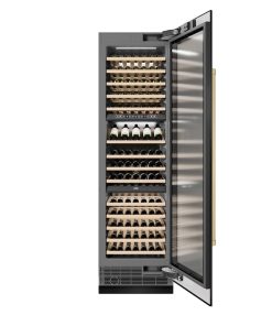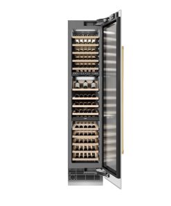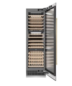 ZLINE Autograph Edition 24 in. 12.4 cu. ft. Triple Zone 100 Bottle Column Wine Cooler in DuraSnow Stainless Steel and Polished Gold Accents (RCWVZ-SN-24-G)
