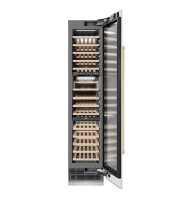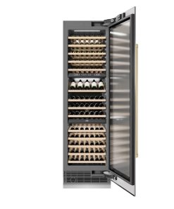 ZLINE Autograph Edition 24 in. 12.4 cu. ft. Triple Zone 100 Bottle Column Wine Cooler in Stainless Steel and Matte Black Accents (RCWVZ-304-24-MB)