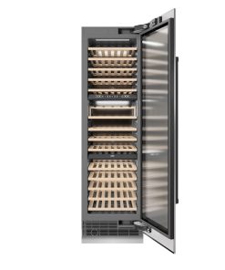 ZLINE Autograph Edition 24 in. 12.4 cu. ft. Triple Zone 100 Bottle Column Wine Cooler in DuraSnow Stainless Steel and Champagne Bronze Accents (RCWVZ-SN-24-CB)