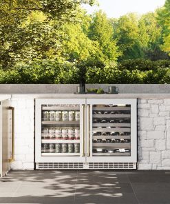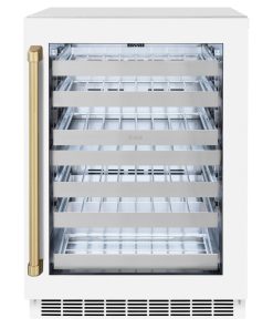 ZLINE Autograph Edition 24 in. Touchstone Dual Zone 44 Bottle Wine Cooler With White Matte Glass Door And Polished Gold Handle (RWDOZ-WM-24-G)