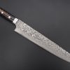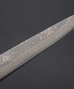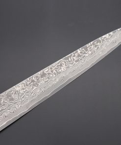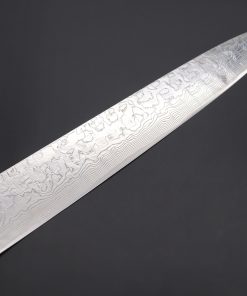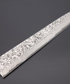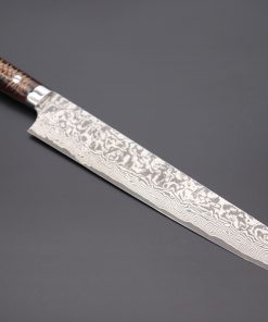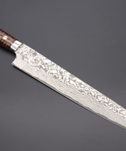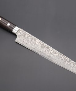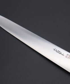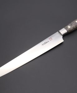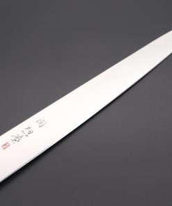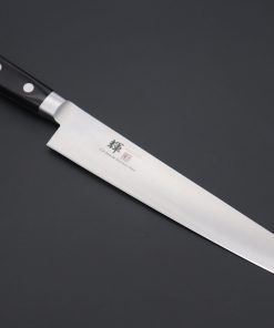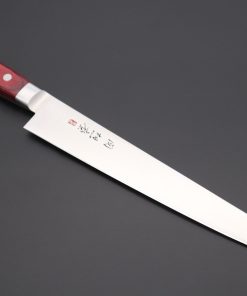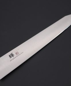 The long, narrow, graceful blade of the Sujihiki is particularly useful for trimming away sinew and fat from meat, finely slicing meat or boneless fish, or for filleting and skinning fish. The long blade allows the meat or fish to be cut in one single drawing motion, from heel to tip.