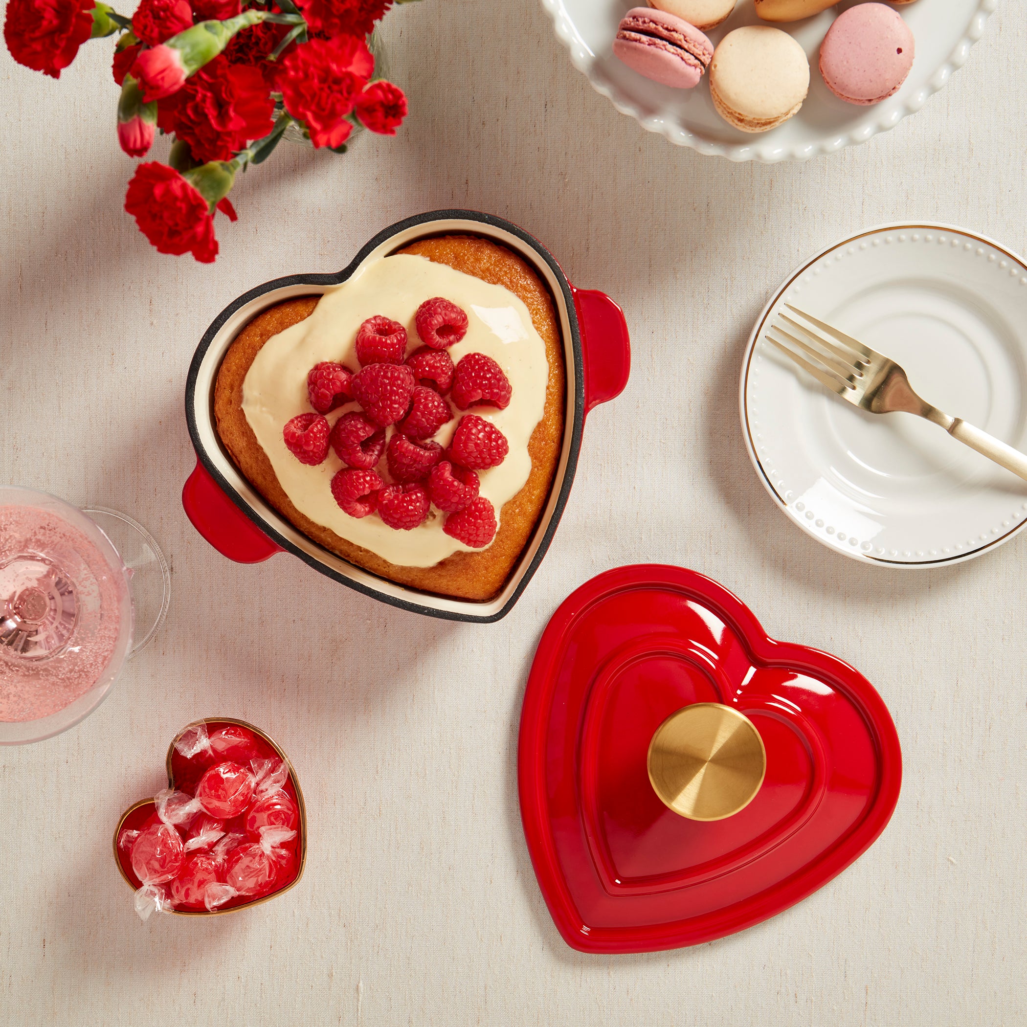1-Quart Enameled Cast Iron Heart-Shaped Dutch Oven, Red