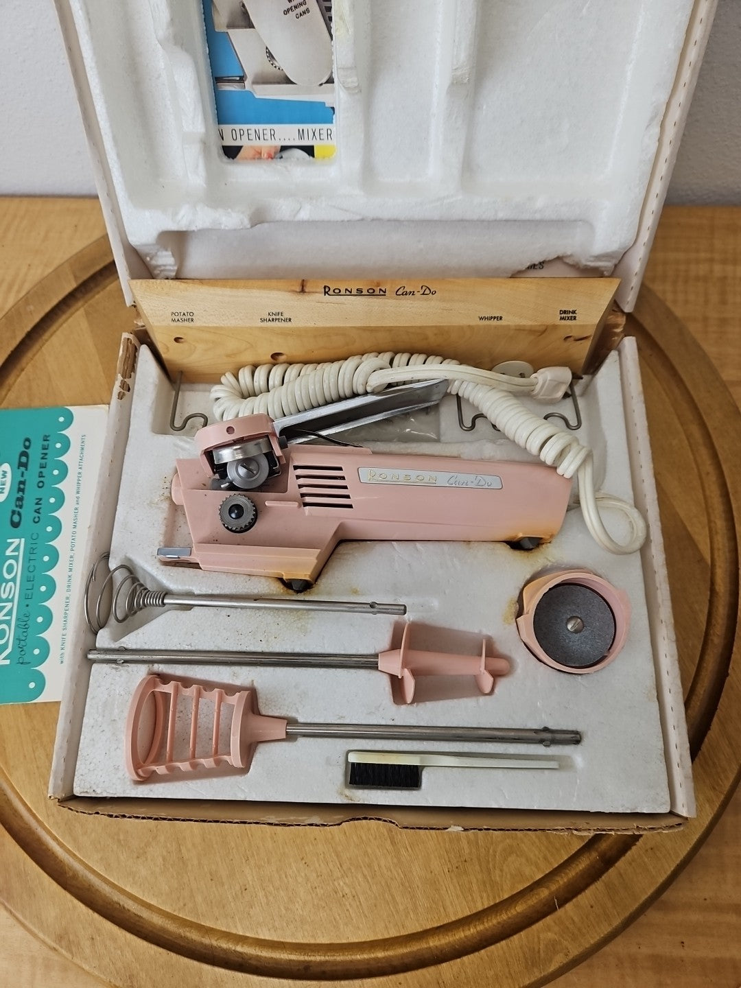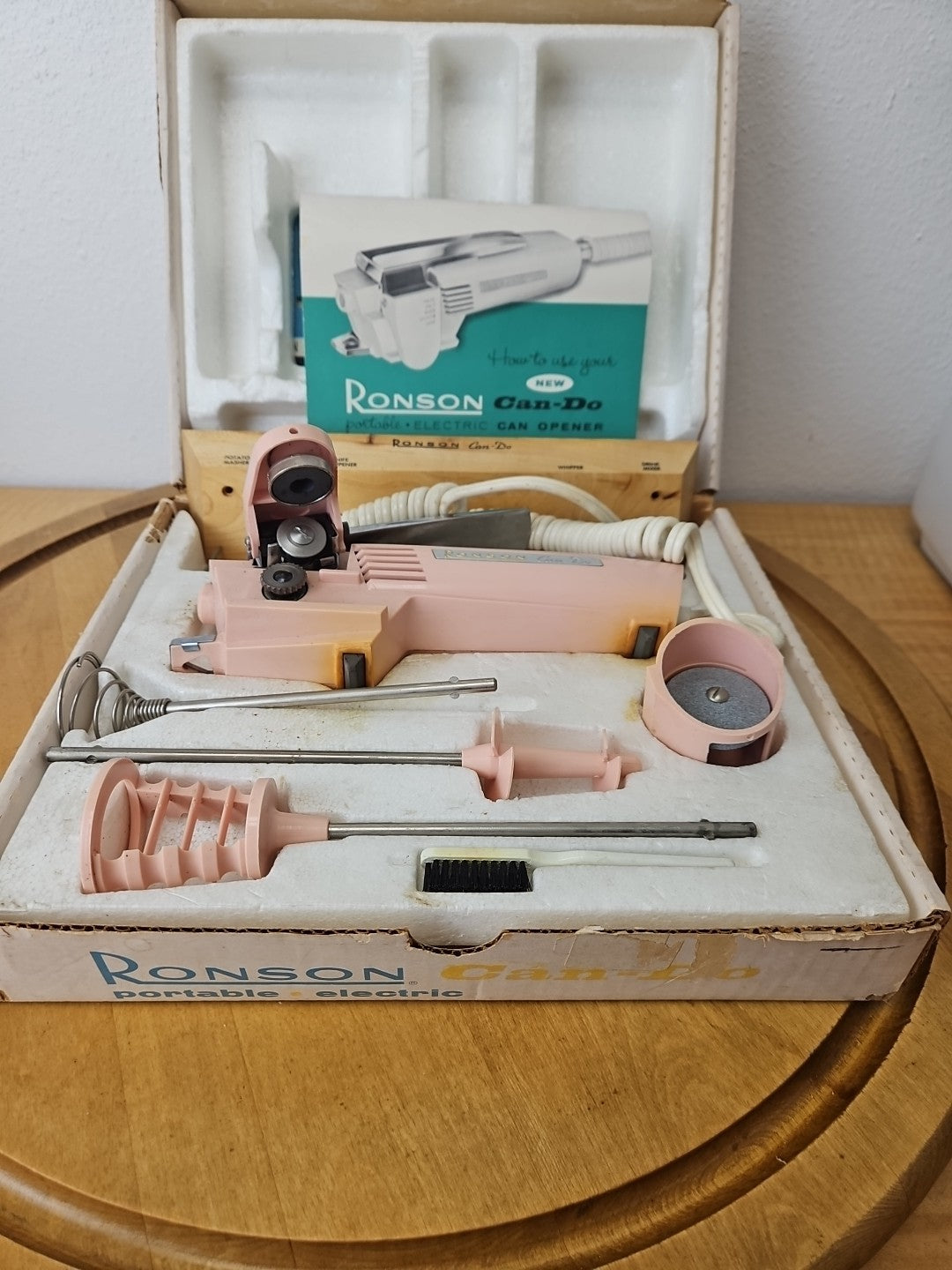 Condition Description: vintage condition, in original box, see photos, turns on, attachments spin