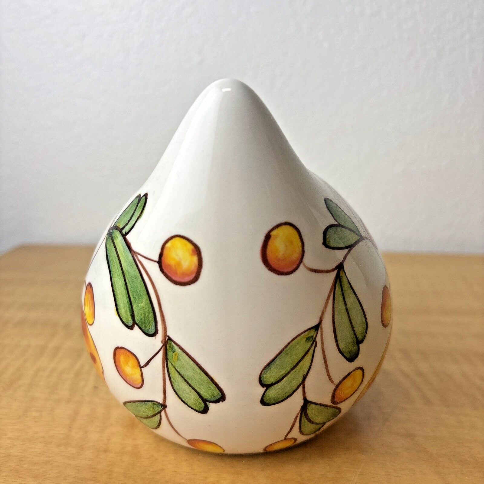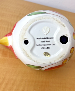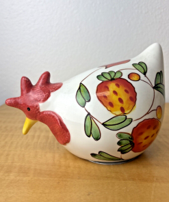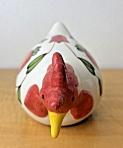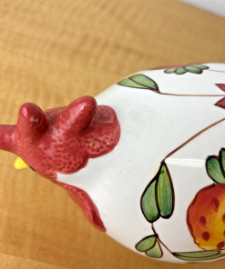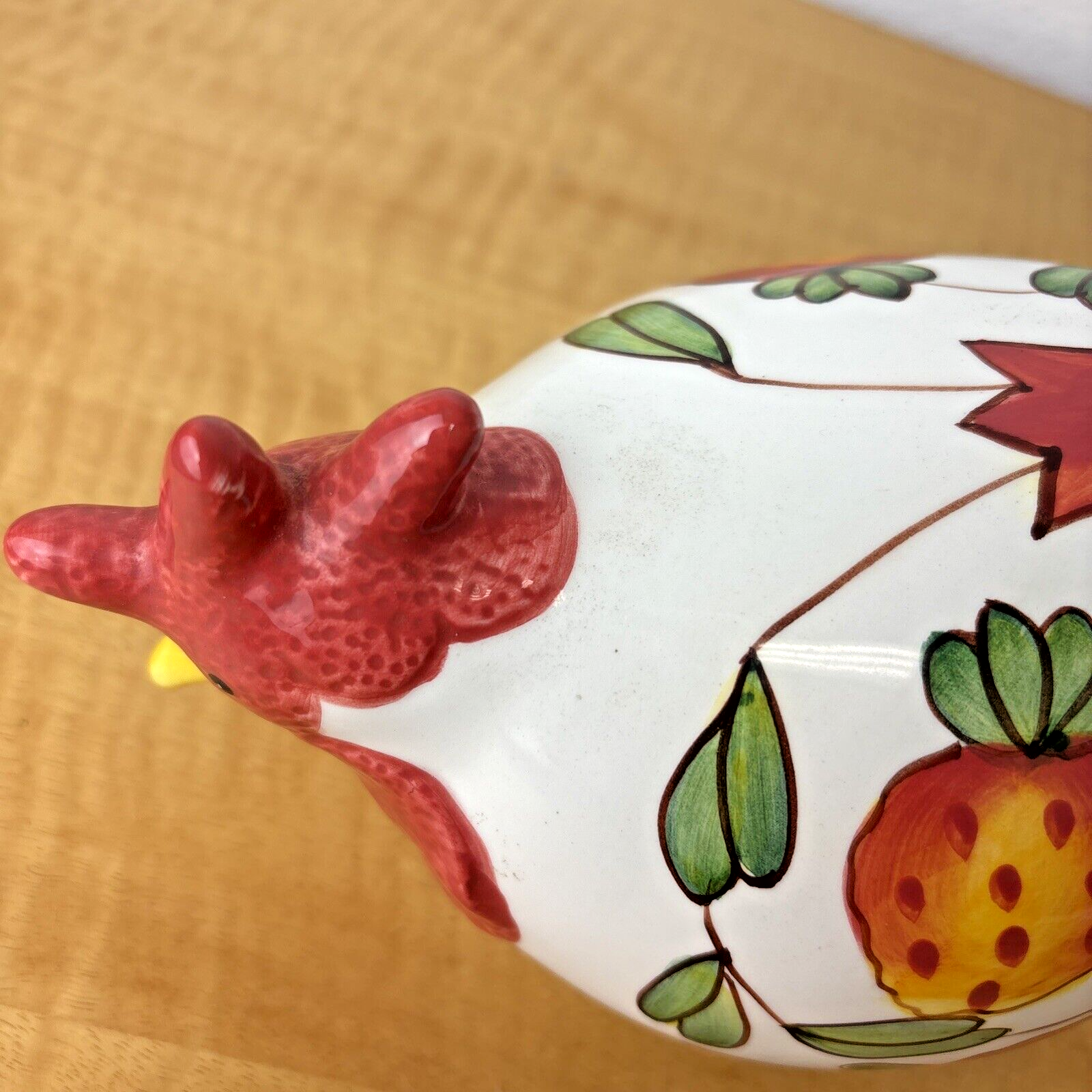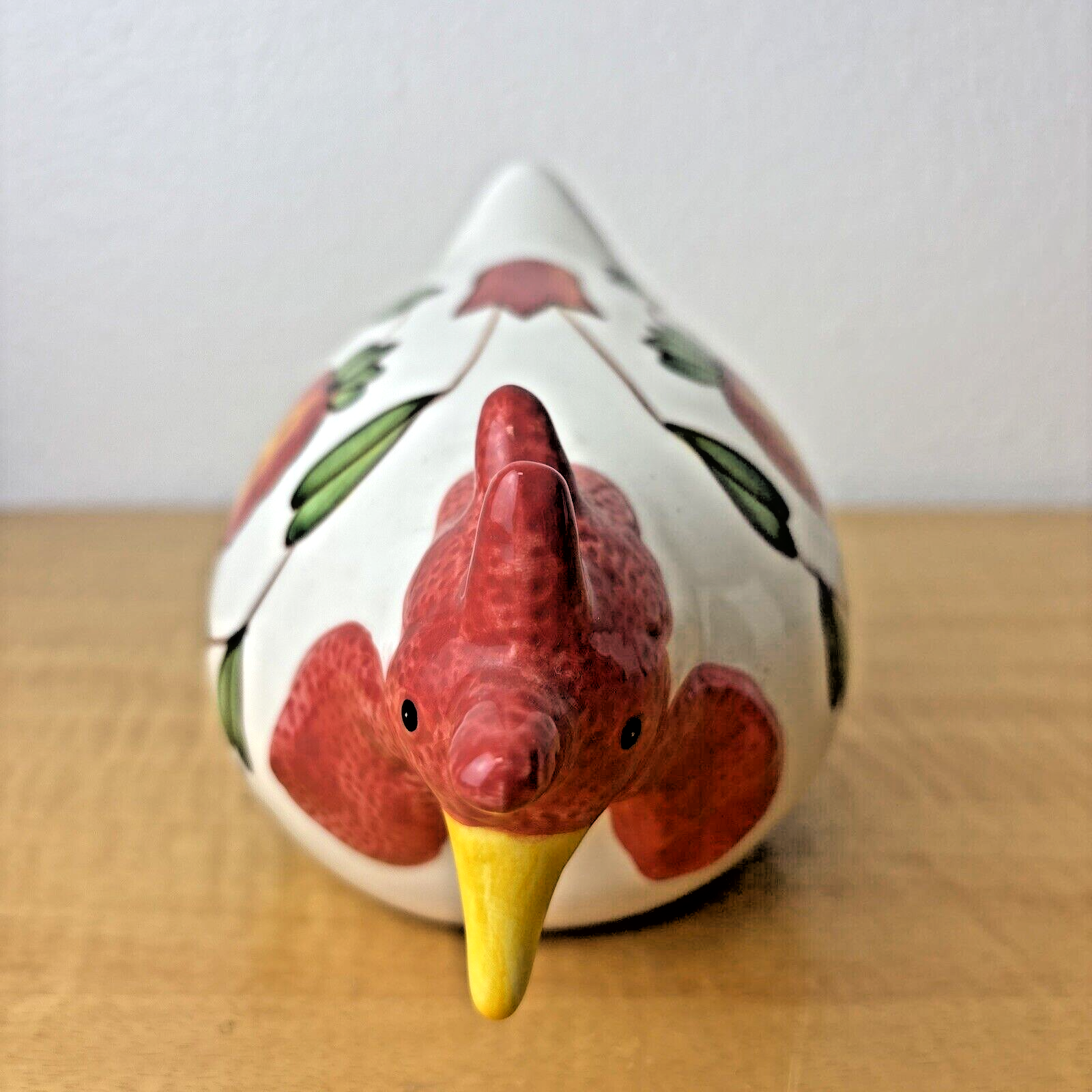 1999 VINTAGE BENNING POTTERS CERAMIC HAND PAINTED CHICKEN WITH STRAWBERRY