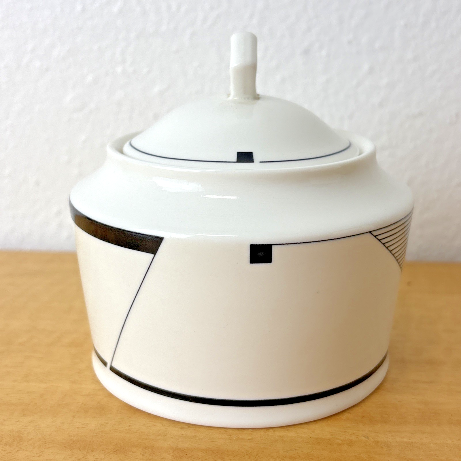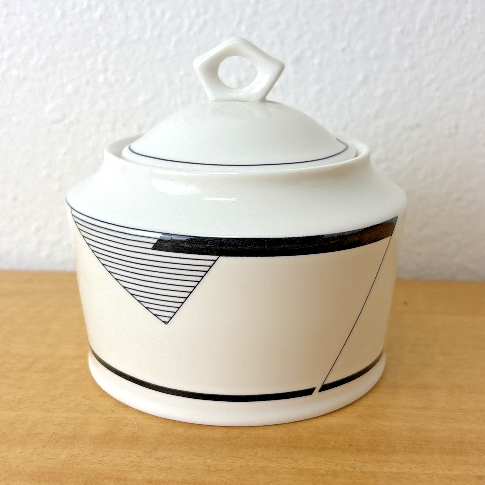 2-Pc Christopher Stuart Black White ANGLES Optima Super Strong Sugar Bowl & Lid