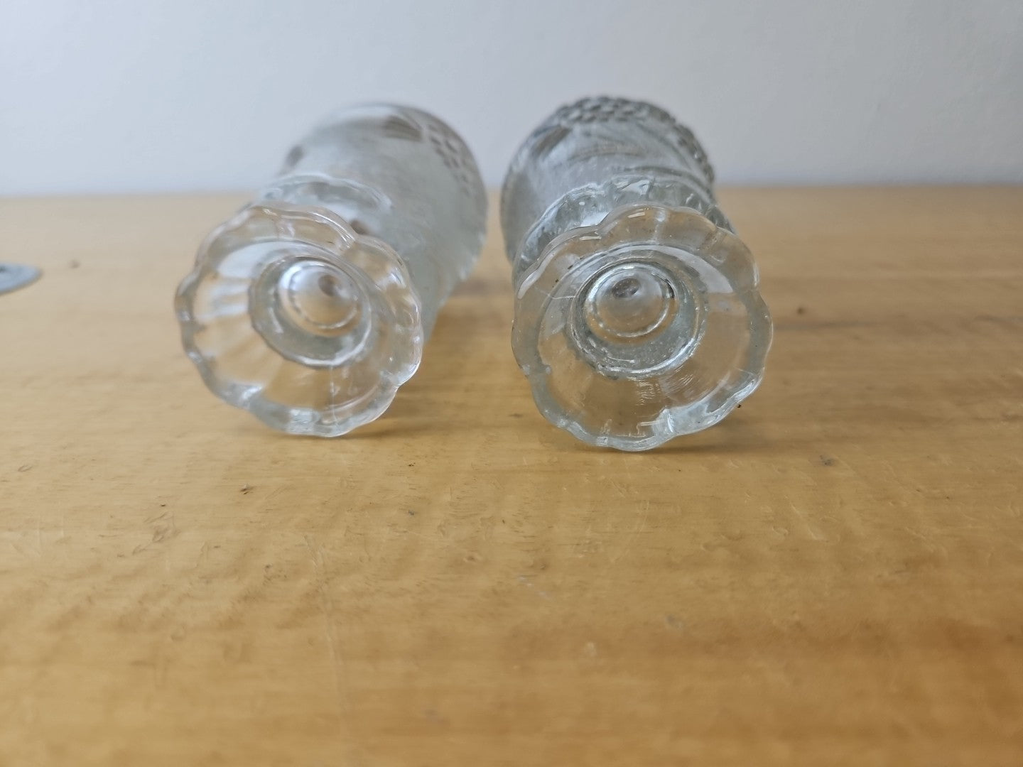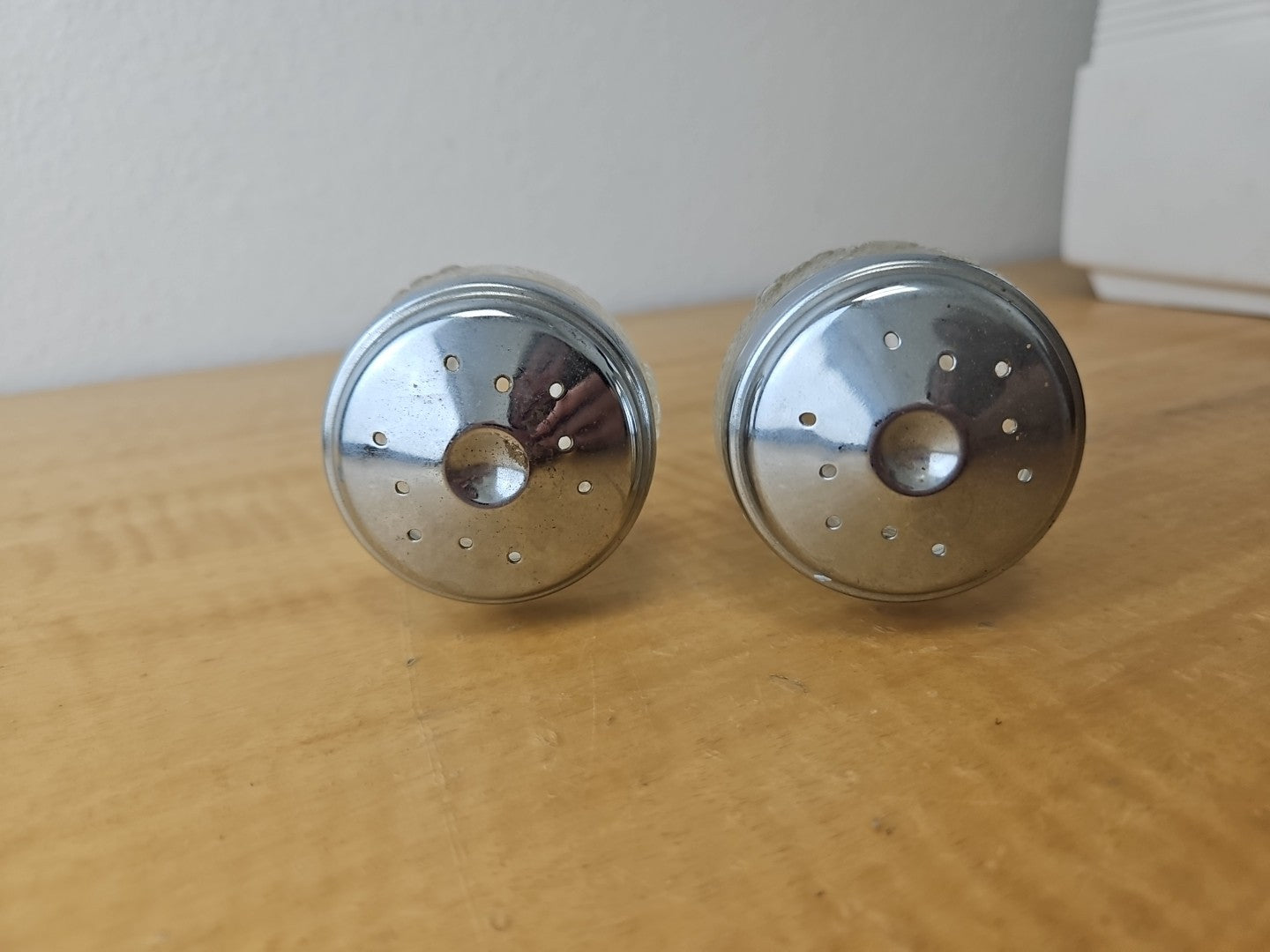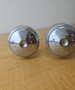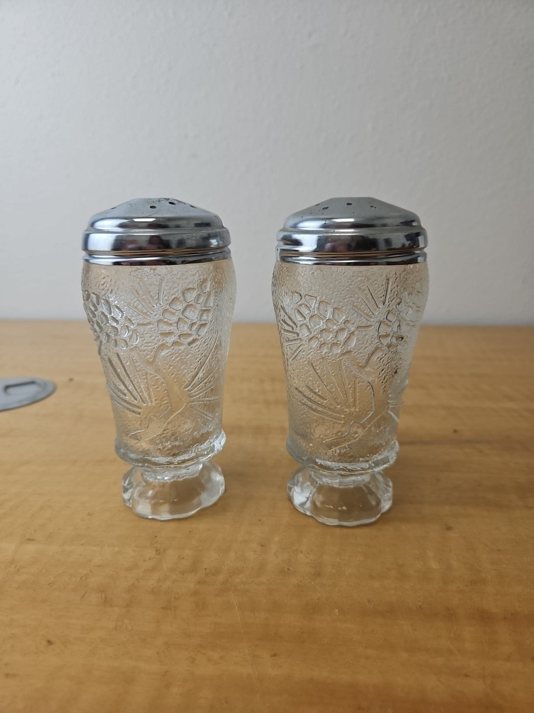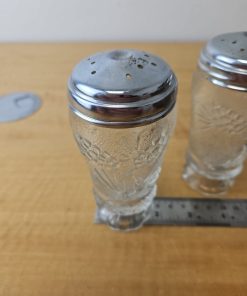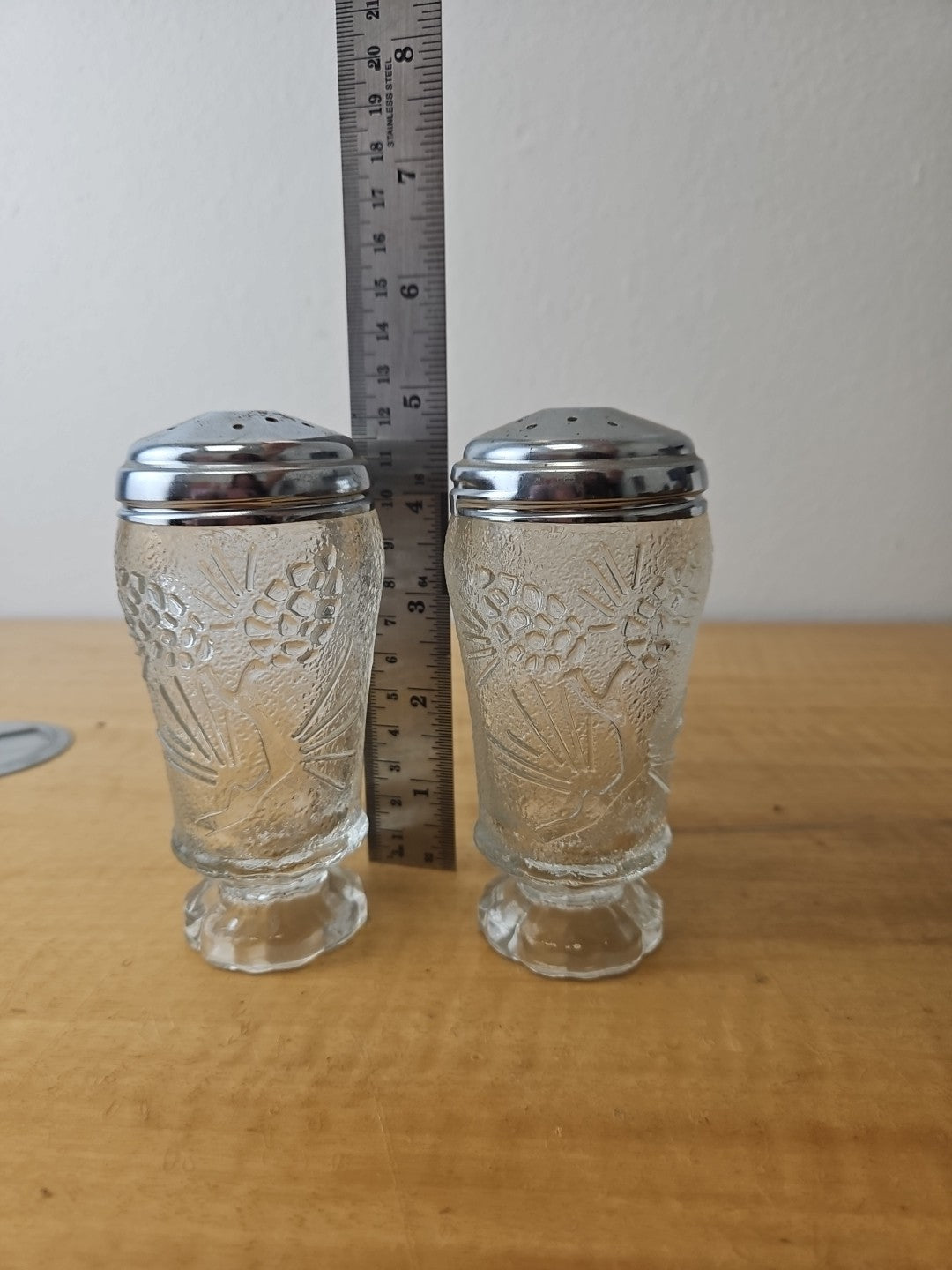 2 Tiara Vintage Glass Footed 5″ SALT or PEPPER SHAKER w/Metal Top Ponderosa Pine