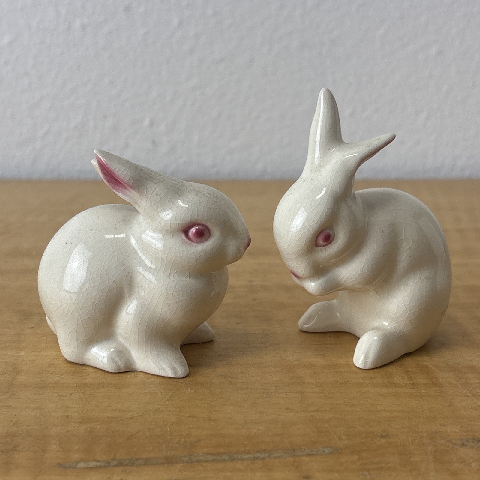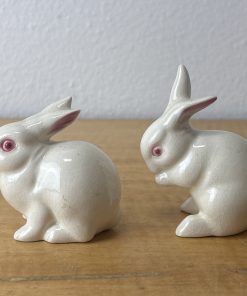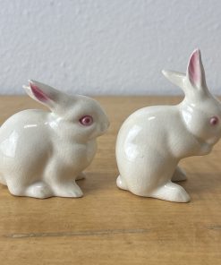 2 Vintage Goebel White Bunny Rabbits 3″ Figurine Porcelain Mini West Germany