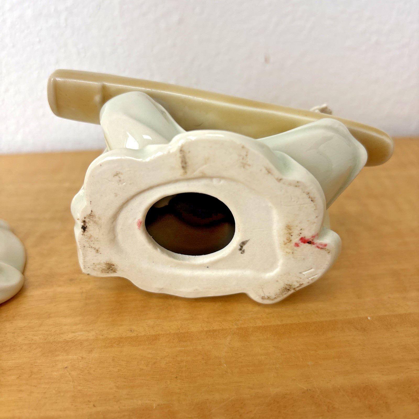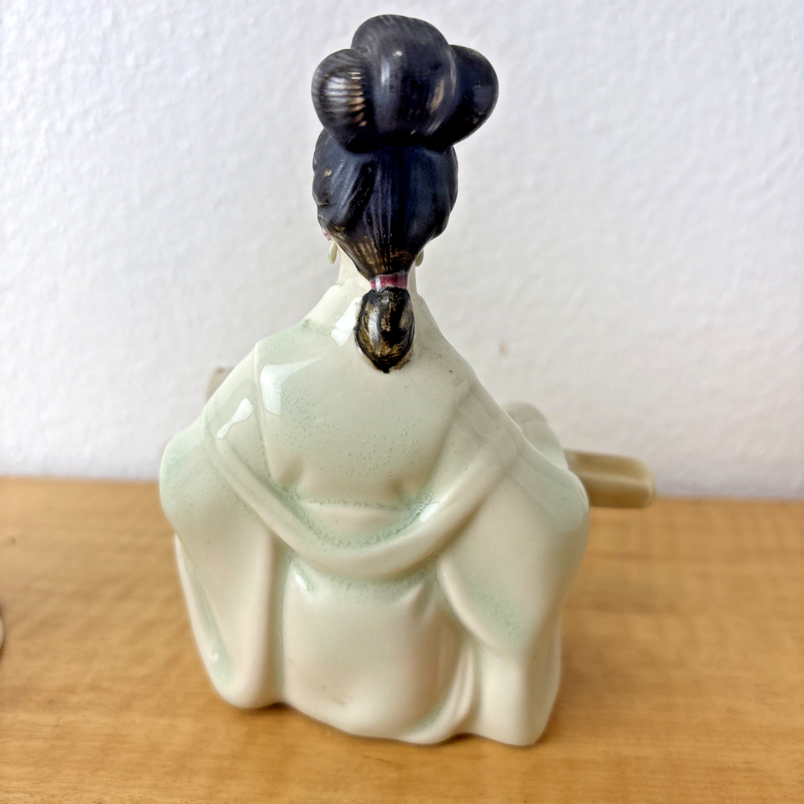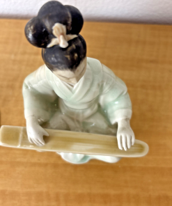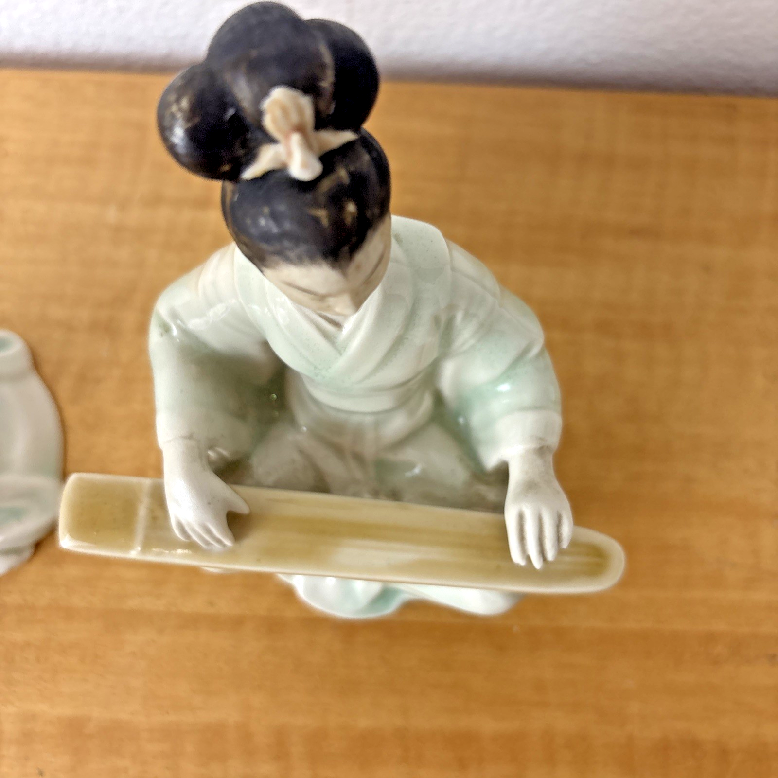 3 Chinese Celadon Porcelain Figurines Women Flute Pluck Pipa Qin Zither Vintage