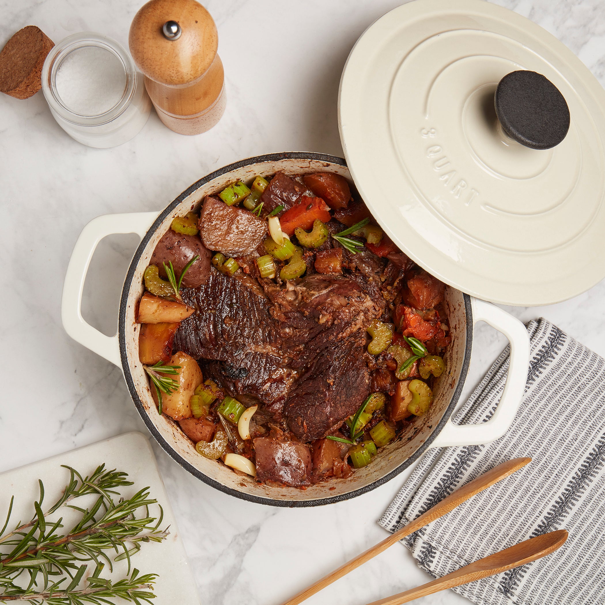 3-Quart Enameled Cast Iron Dutch Oven, White
