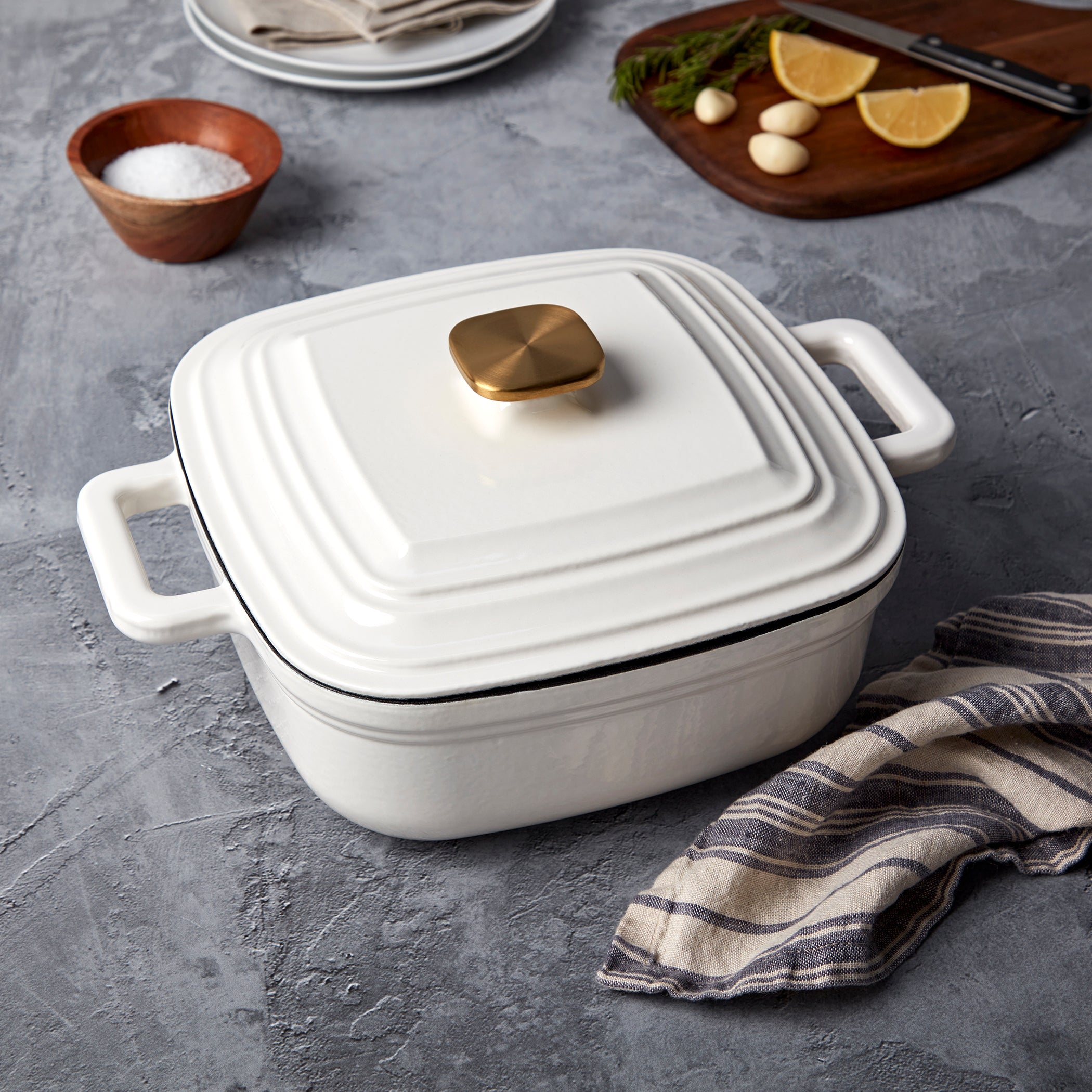 4-Quart Enameled Cast Iron Square Dutch Ovens, White