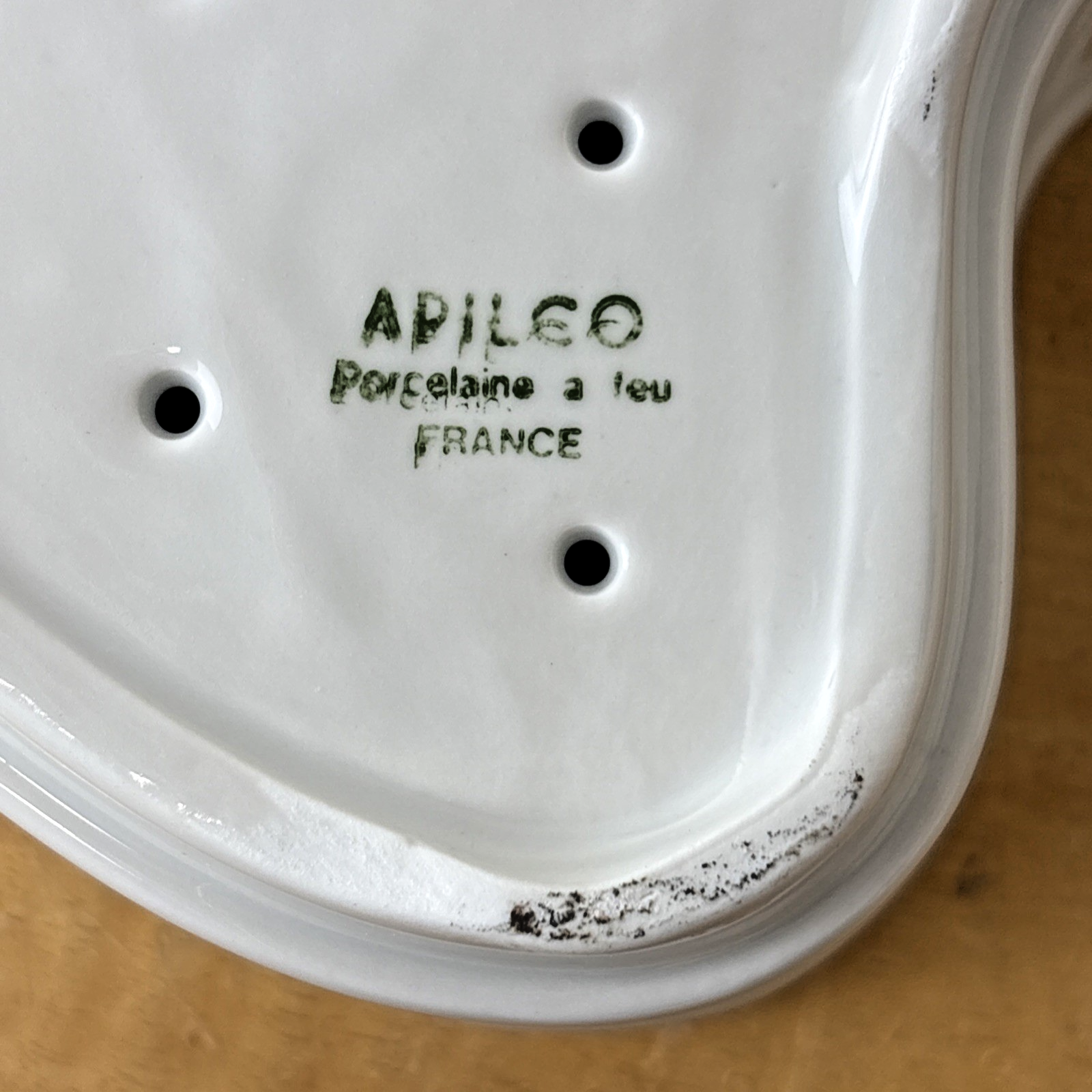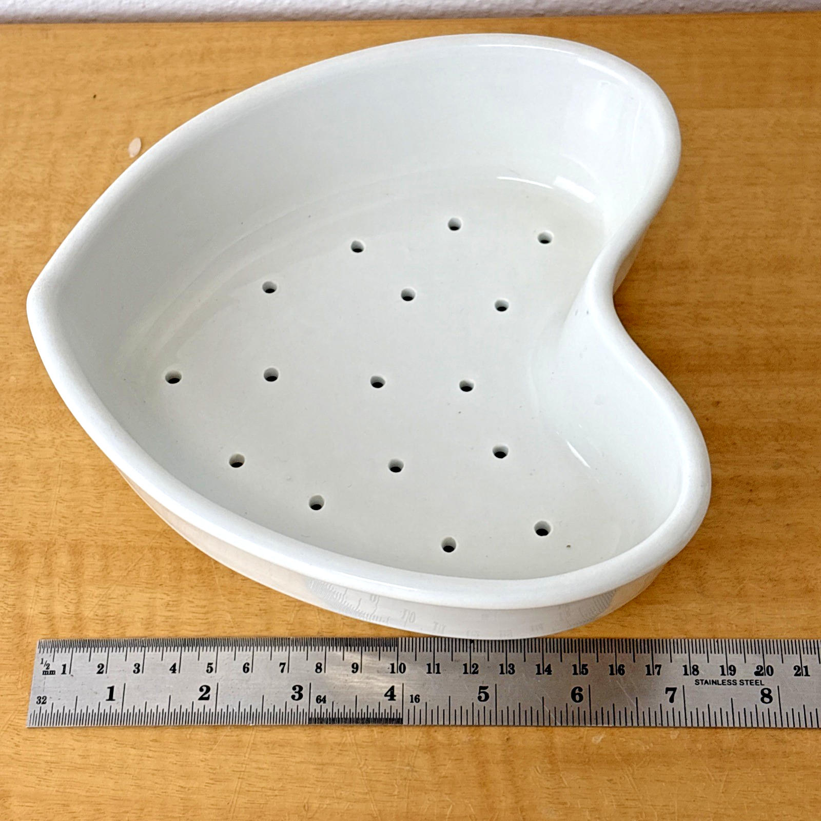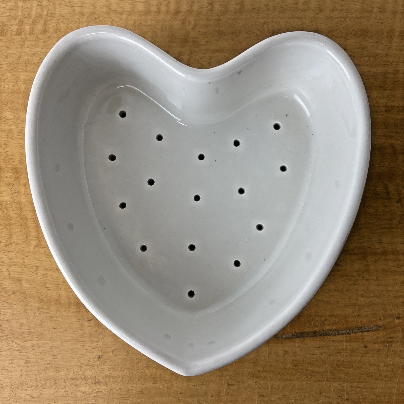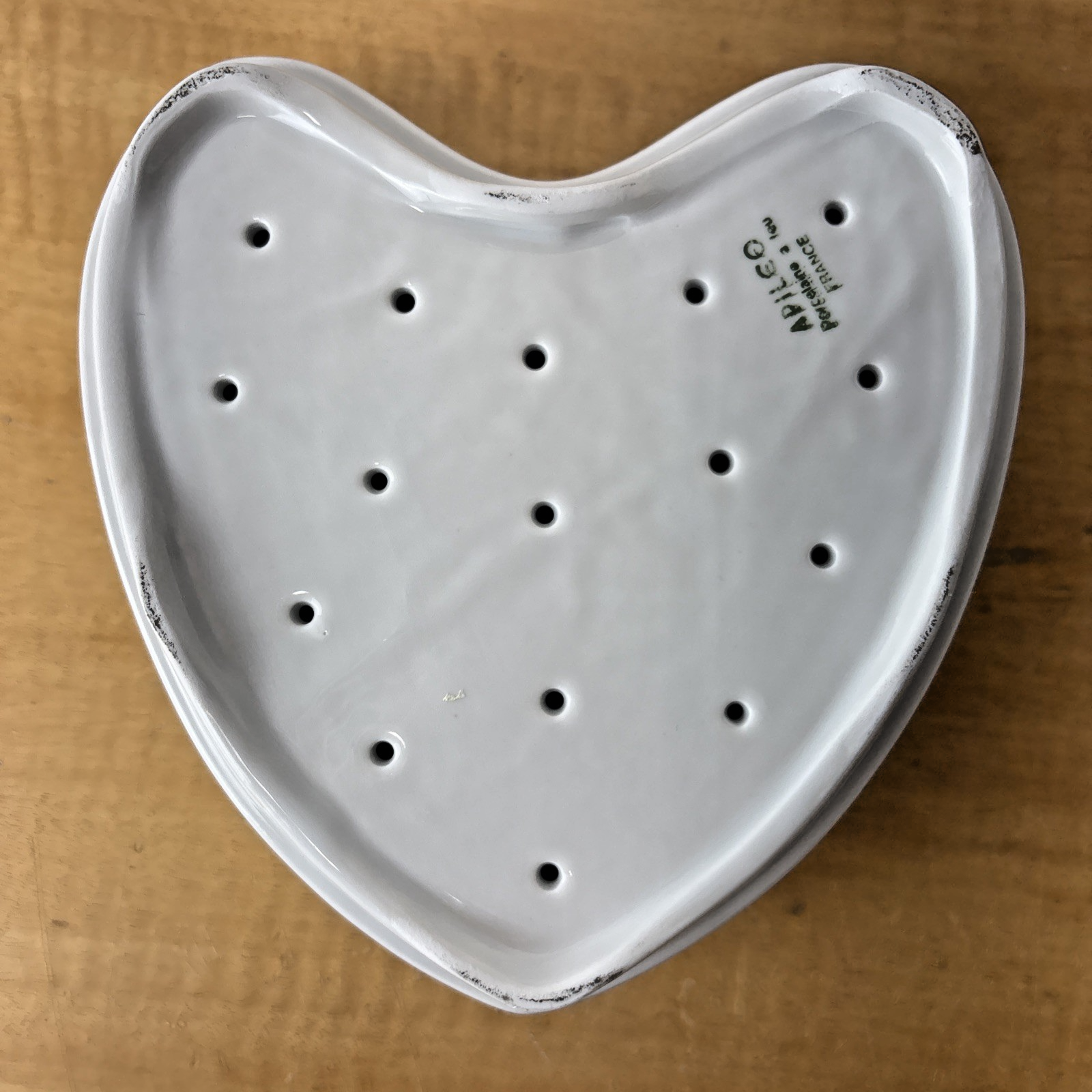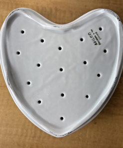 7″ LARGE APILCO FRANCE HEART SHAPED CHEESE MOLD STRAINER WHITE PORCELAIN