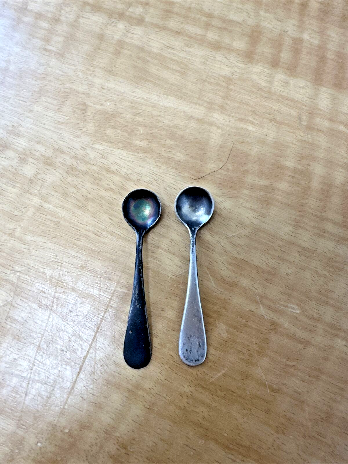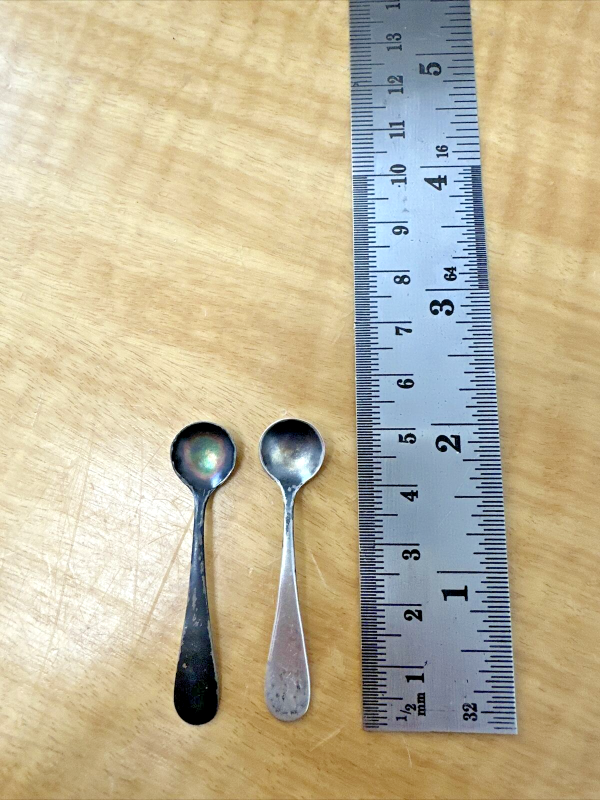 A Pair Sterling Silver Salt Pepper Sugar Spoons Small Mini Tiny Rare
