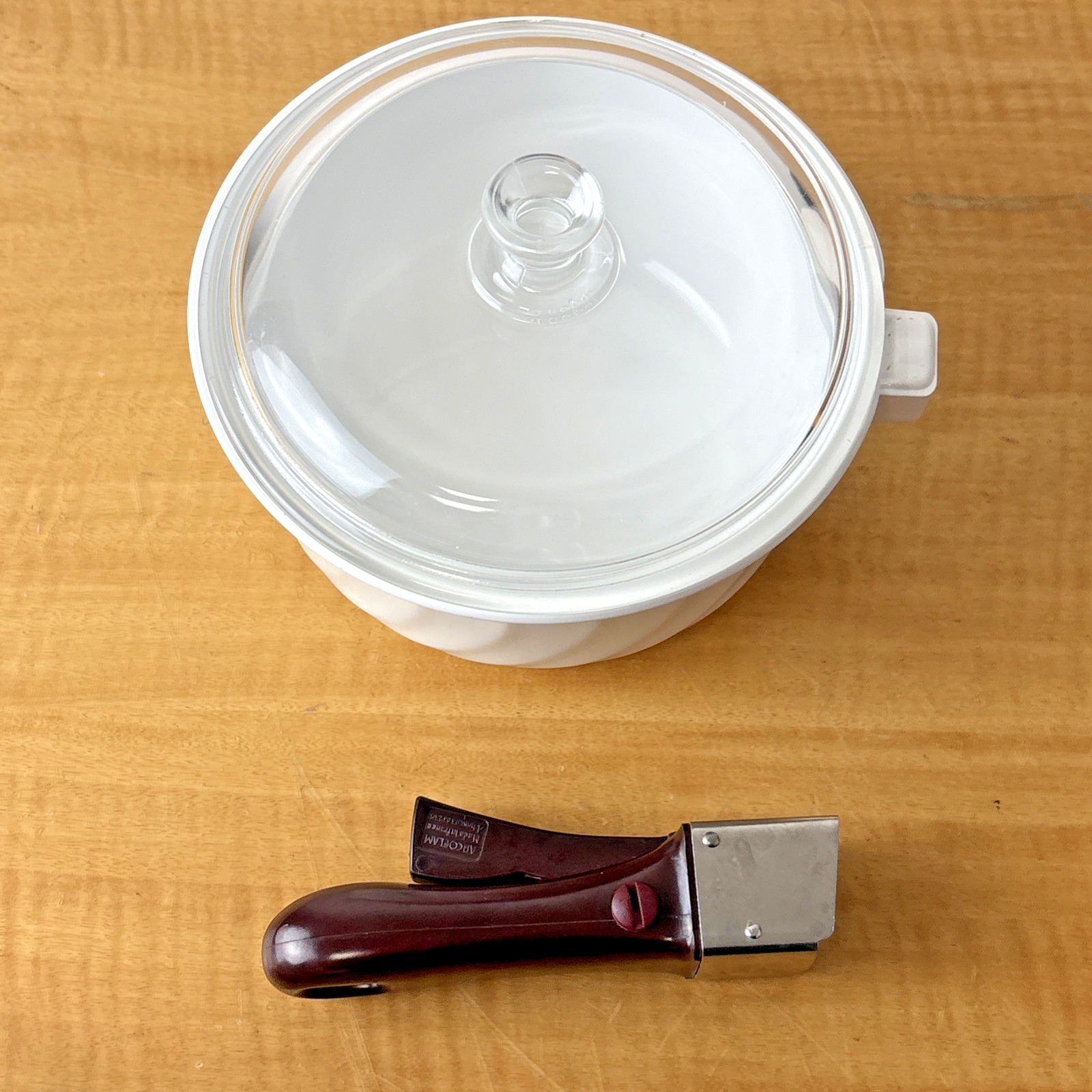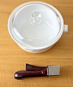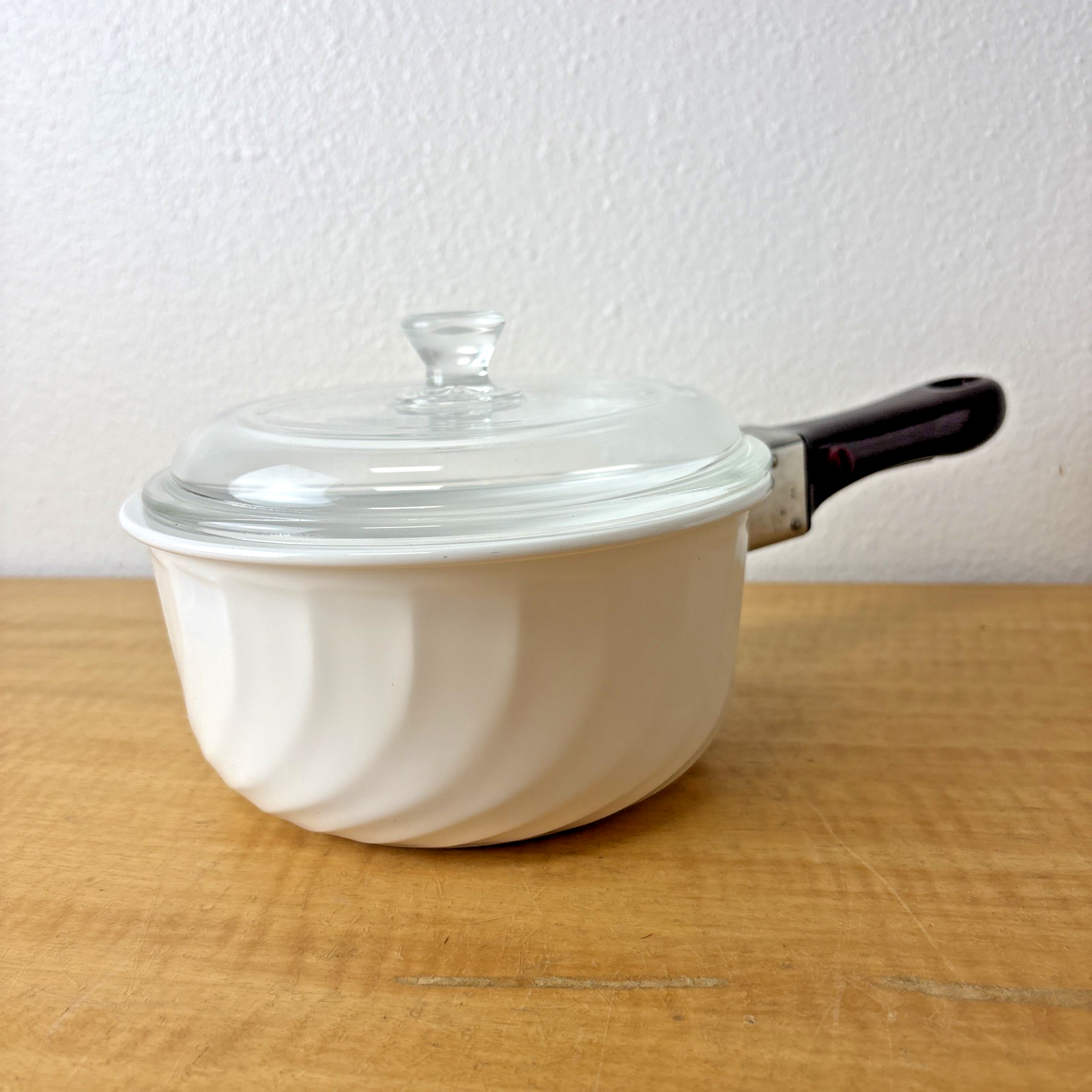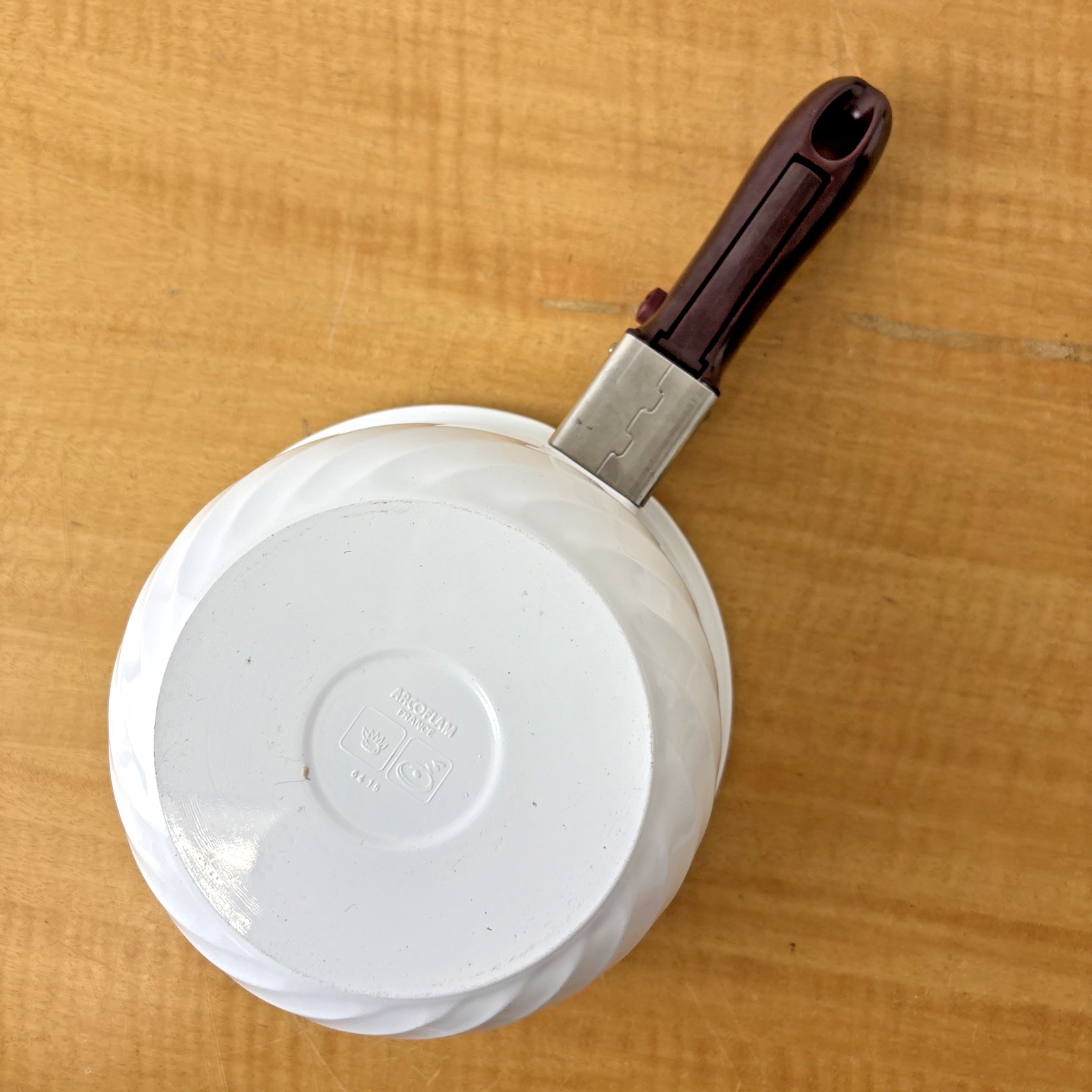 ACROFLAM FRANCE WHITE SWIRL 7″ INCHSAUCEPAN WITH LID & DETACHABLE HANDLE