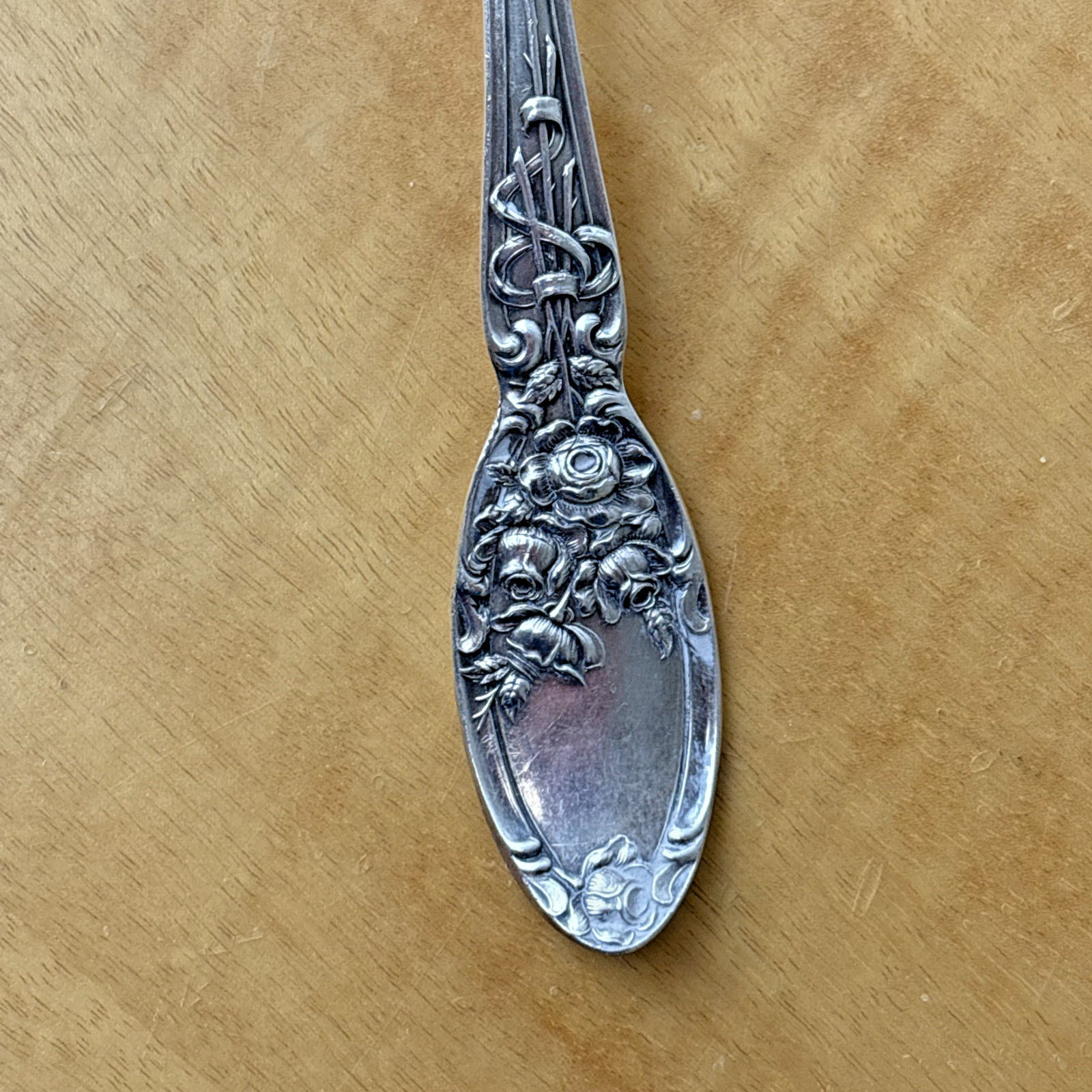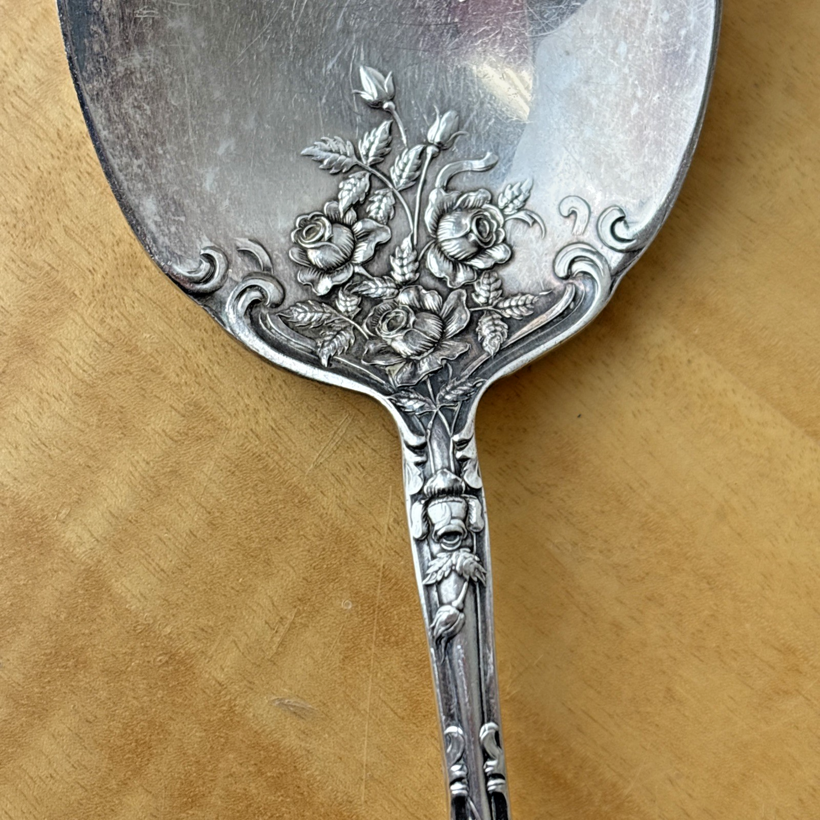 Alvin Patent Silver Plate Rose Pattern Patina Lovely 9″ inch Serving Spoon