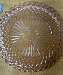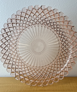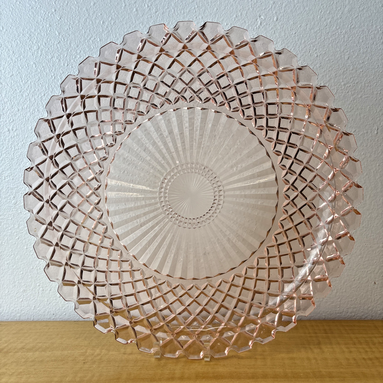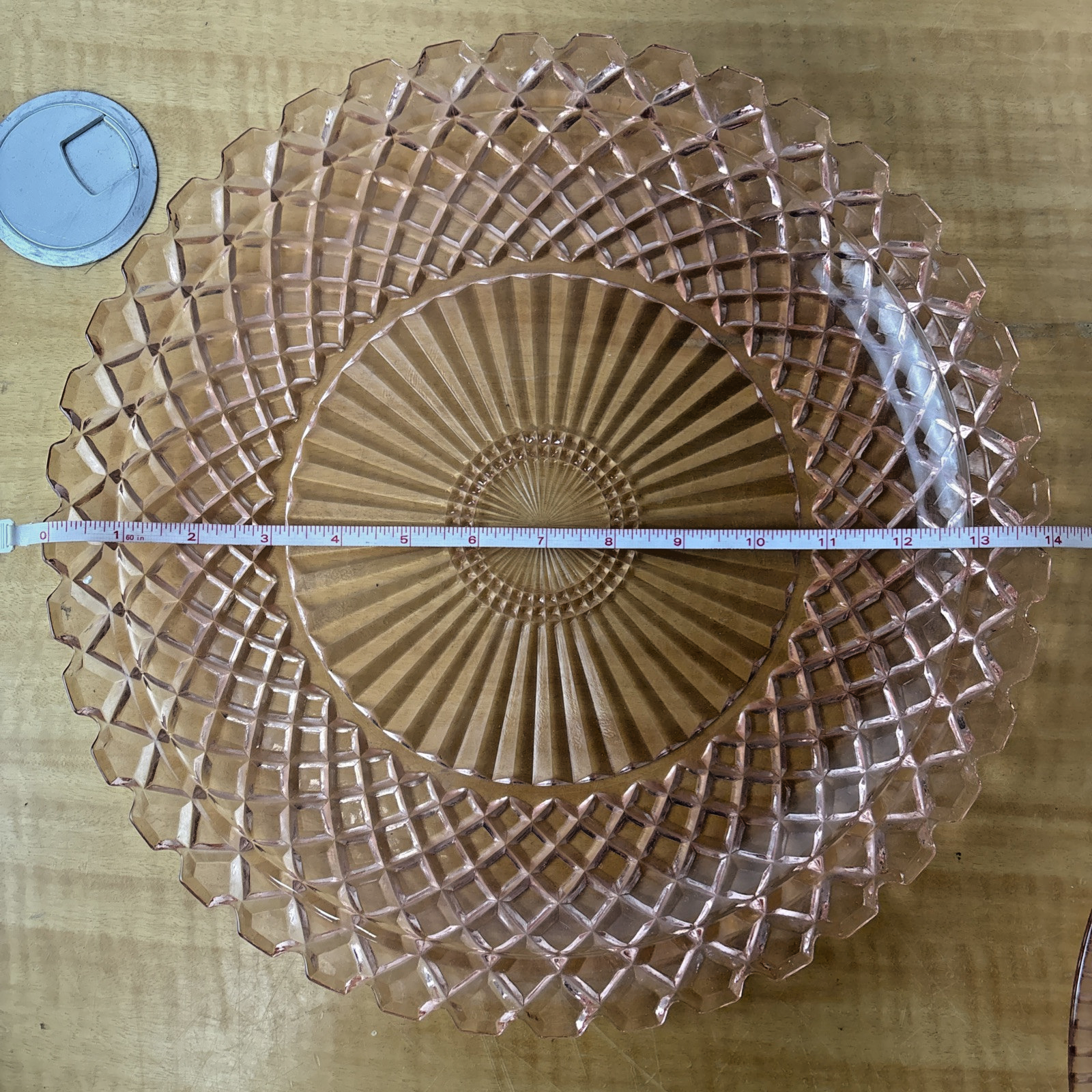 Anchor Hocking 14″ Round Pink Depression Glass Cake, Serving Platter / Dish
