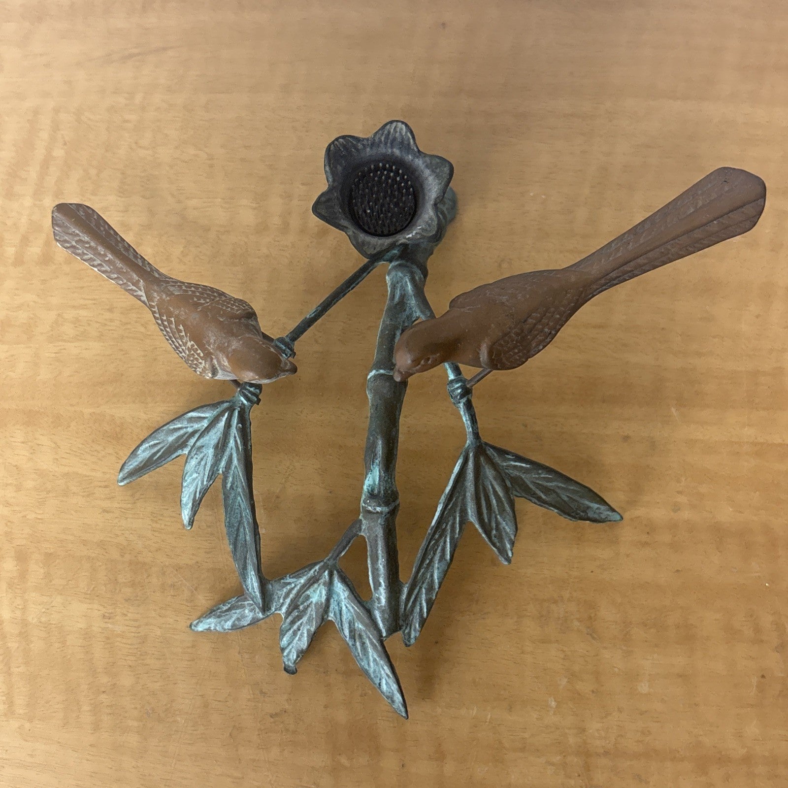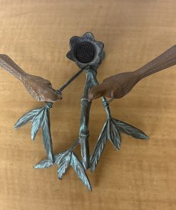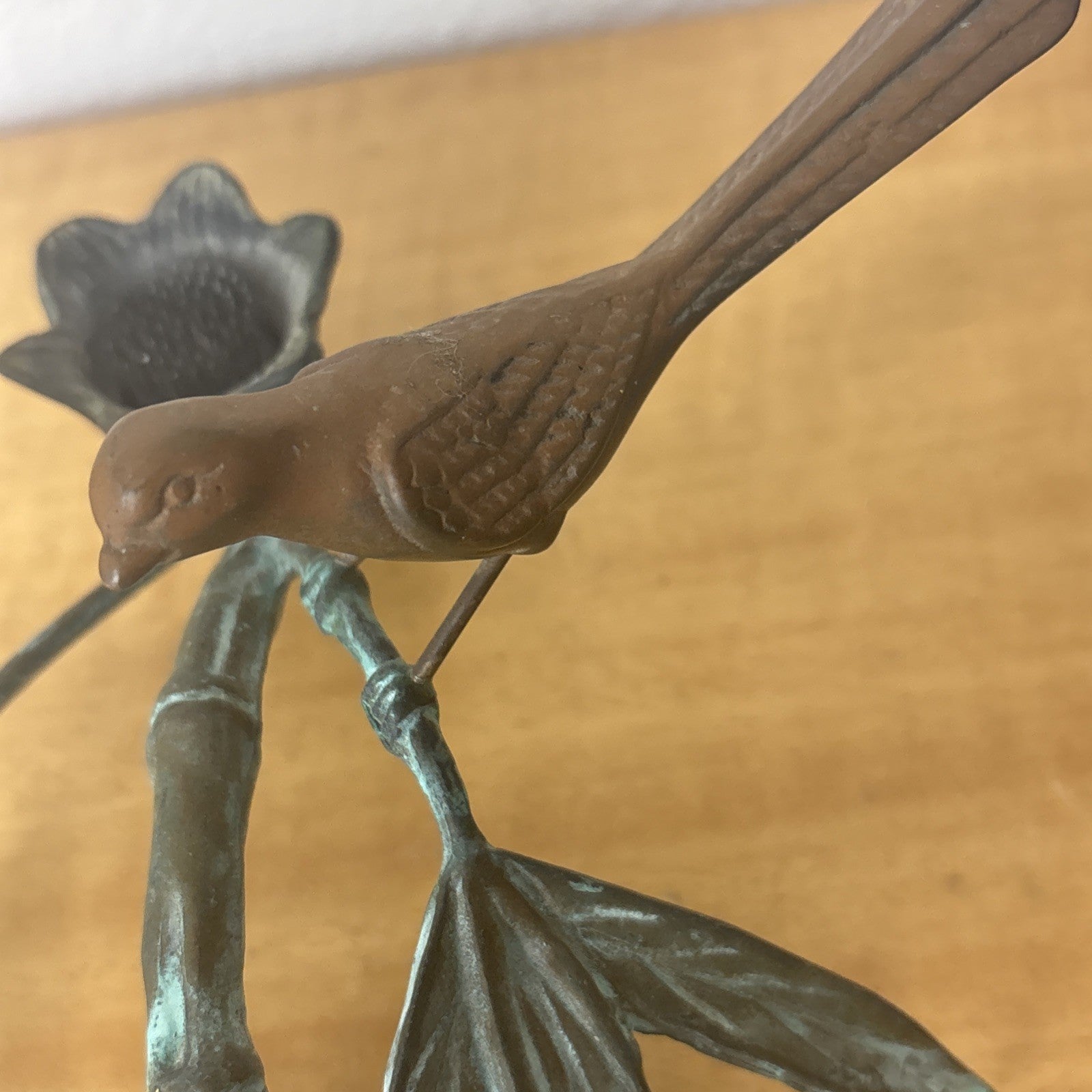 Andrea by Sadek Brass Metal Birds on Bamboo Ikebana Art Vase