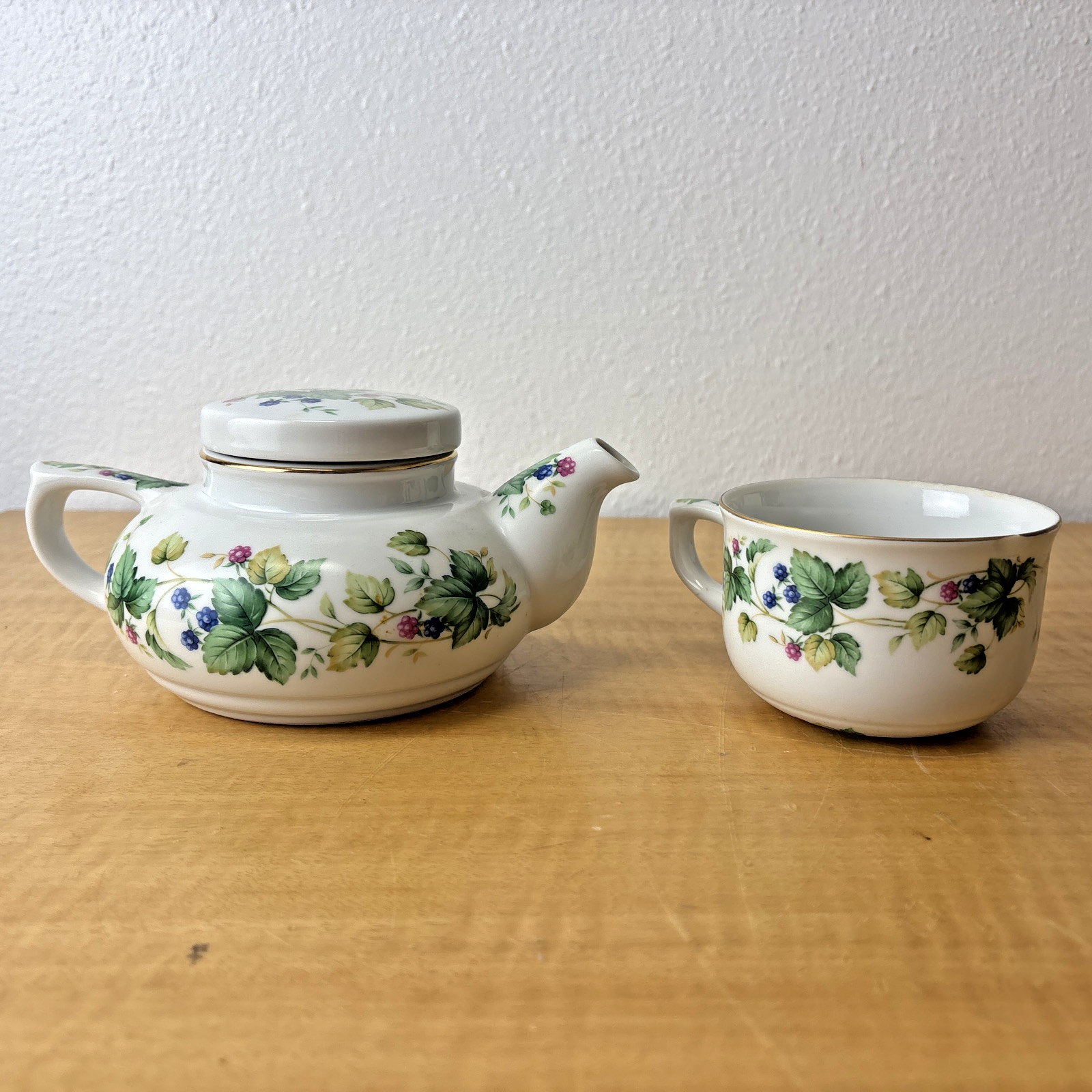Andrea Sadek Tea Pot Cup Lid Blackberries And Ivy Gold Trim Japan