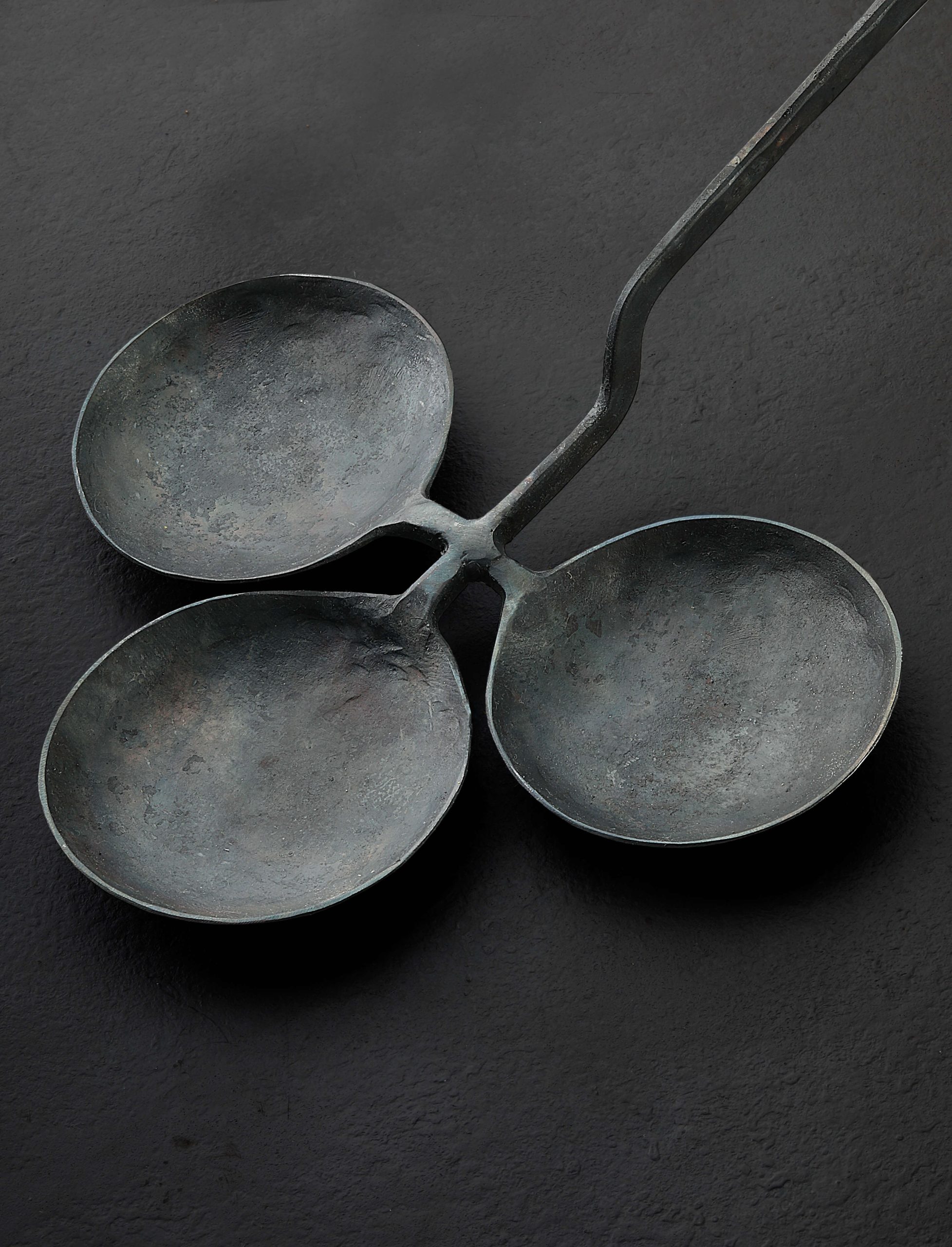 If one or two eggs were not enough, third try’s the charm. From the South Korean workshop Anseong Daejanggan of blacksmith Master Shin In-young is a spoon capable of frying three eggs at once over an open flame. Spice up your camping trip or backyard fire pit with something a little less traditional than a s’more this season. Made of carbon steel for the smoothest cooking experience and with a 31″ long handle to separate chef from fire, this egg spoon lets breakfast come three-at-a-time, as easy as it can be in the great outdoors.