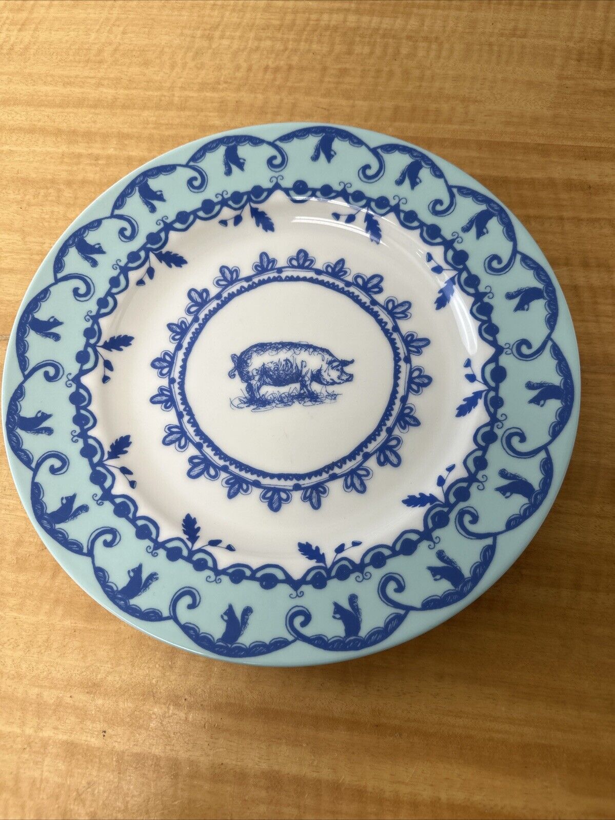 Anthropologie Dinner Plate Pig Squirrel Japan White Blue Decor Farmhouse Retired