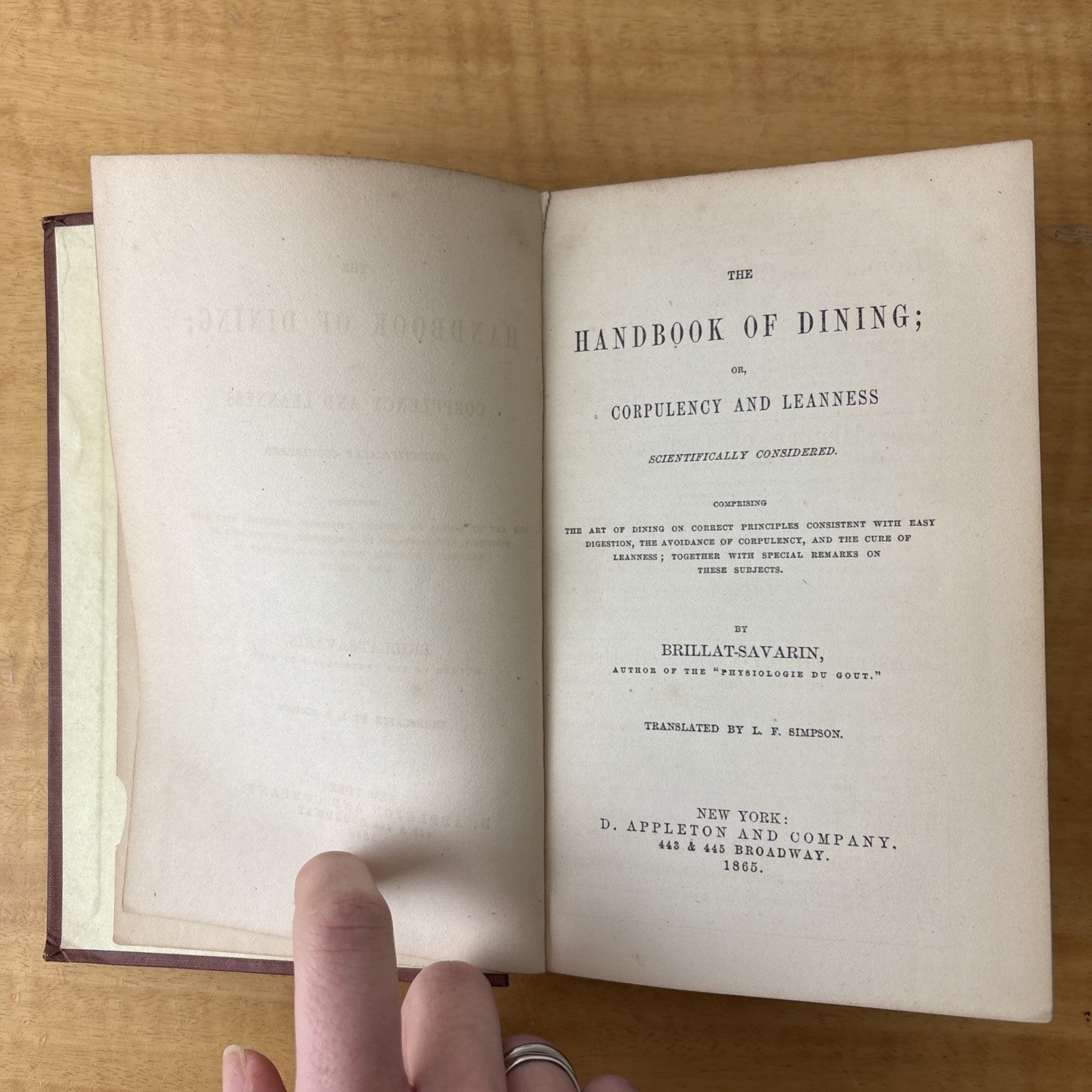 Antique 1865 “Handbook of Dining or, Corpulency and Leanness” by Brillat-Savarin
