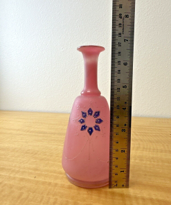 Antique 1880’s Pink Hand Blown Glass Floral Barbershop Bottle Pontil Marked Rare