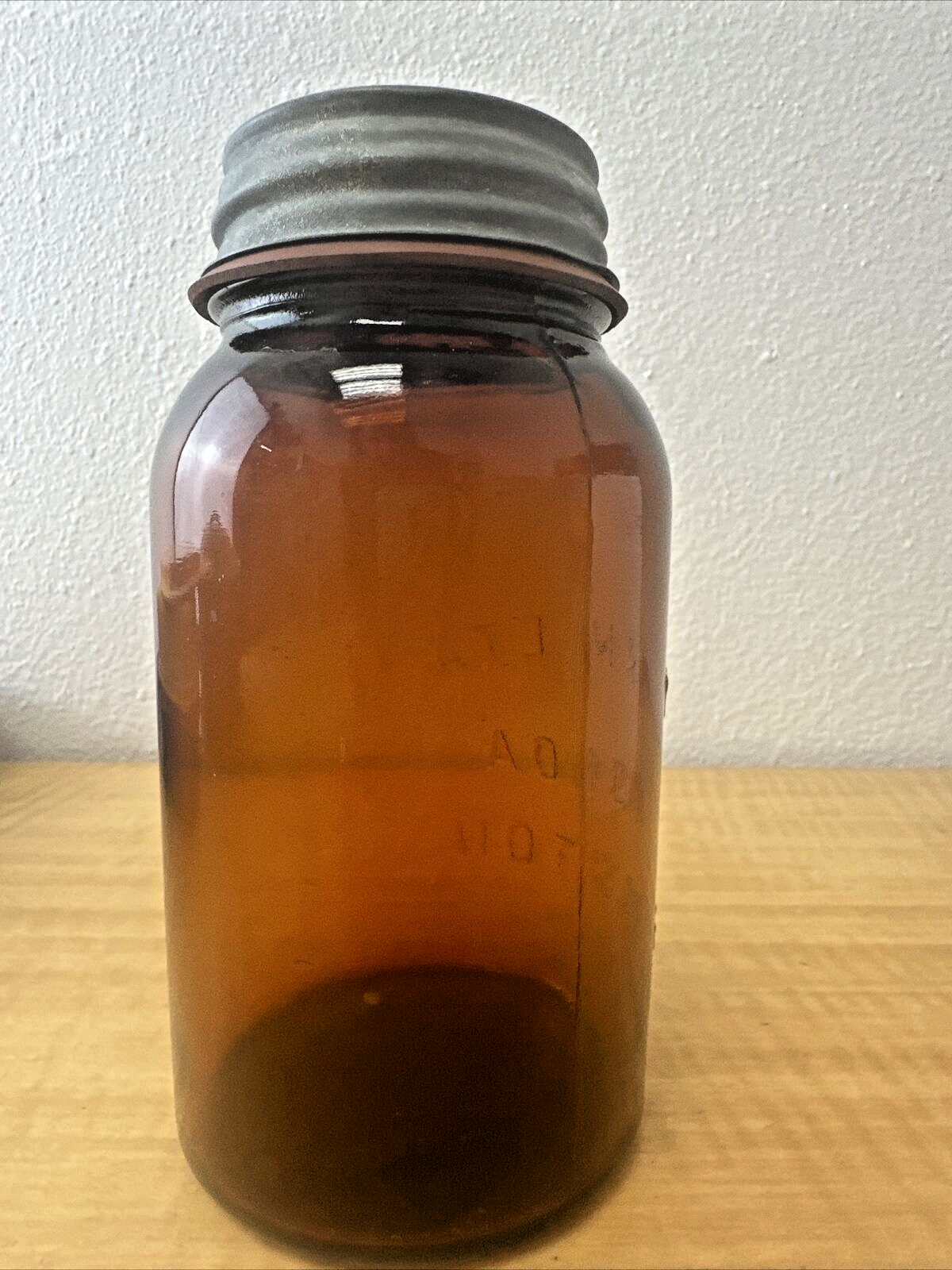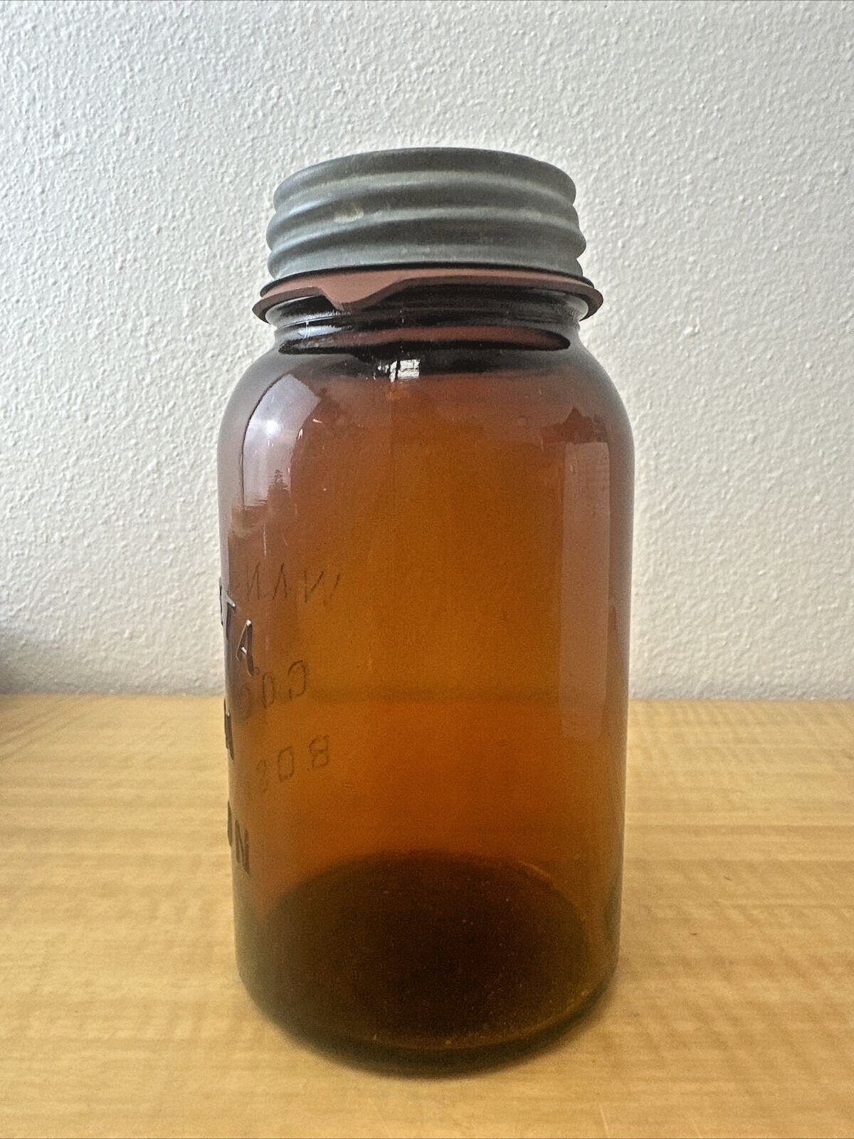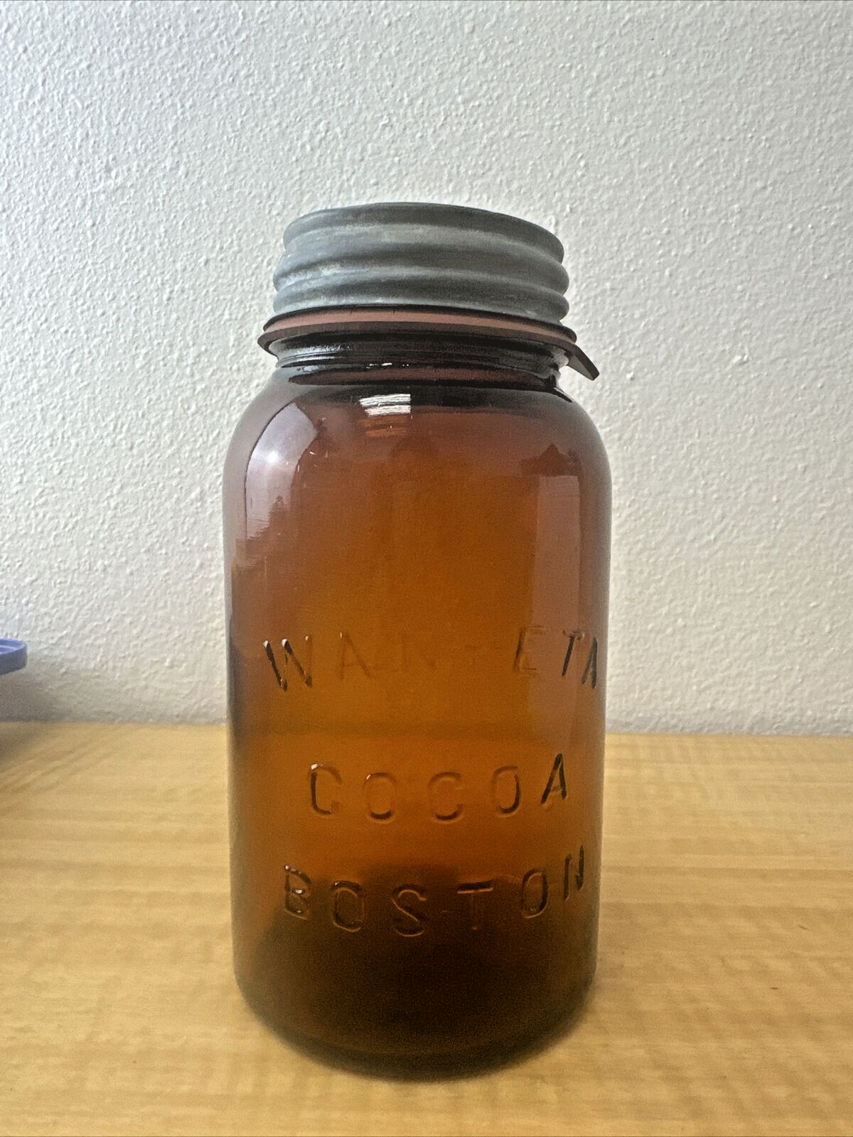 Antique Amber Glass Jar WAN-ETA COCOA BOSTON Embossed