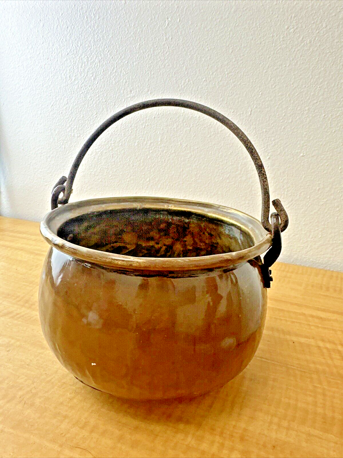 Antique Copper Cauldron Primitive Bucket Hanging Pot Kettle Hammered