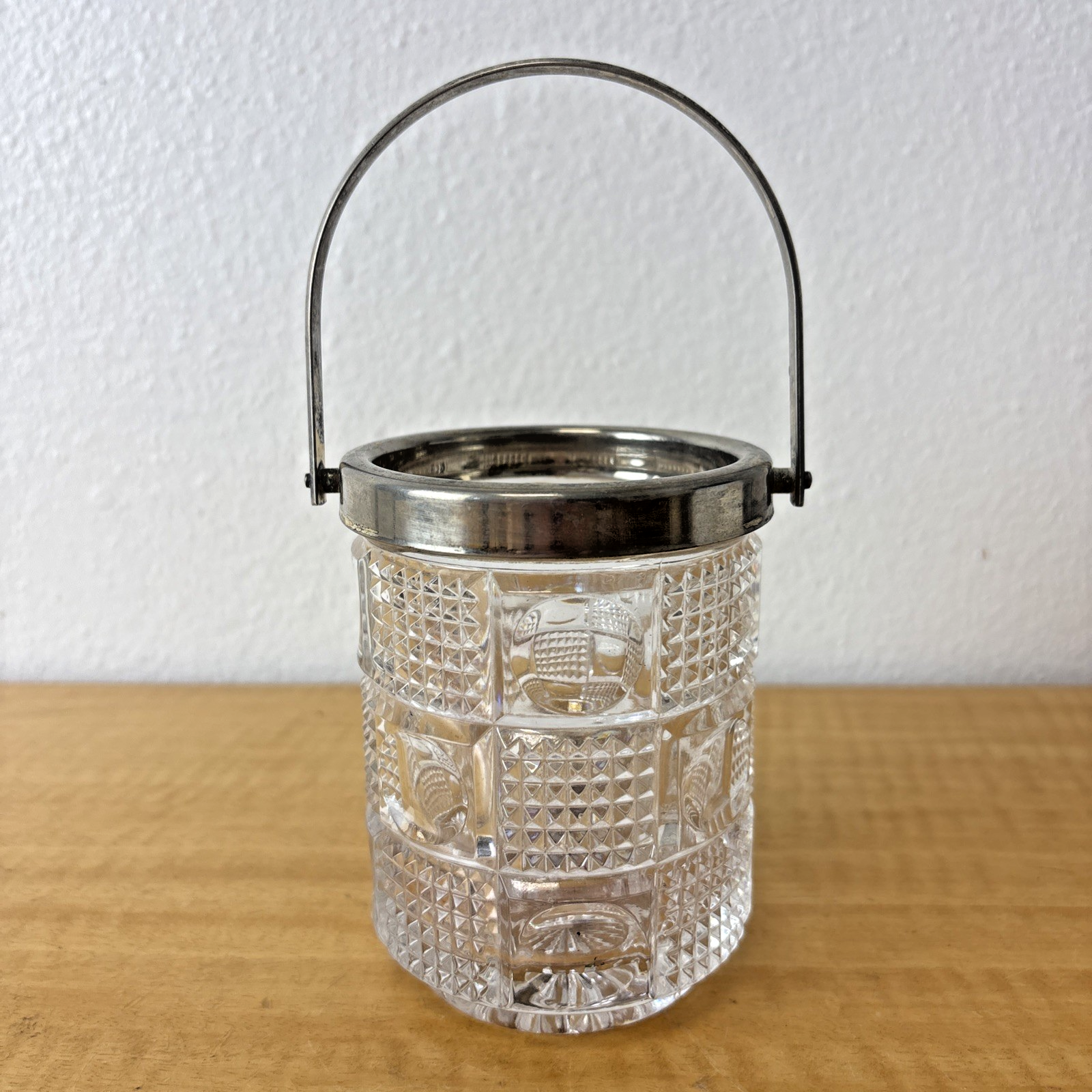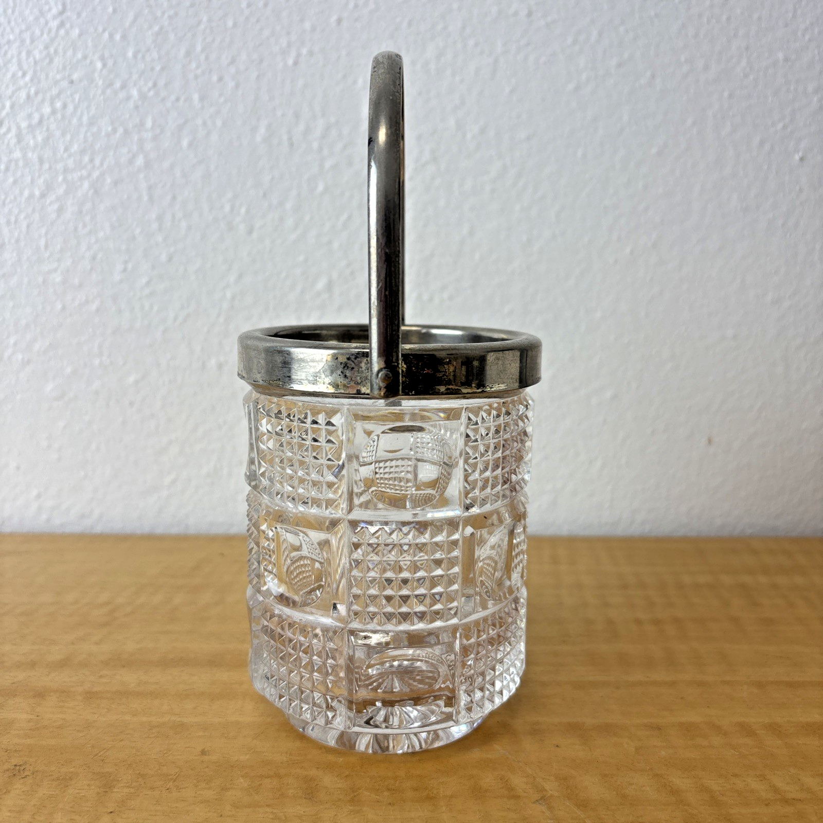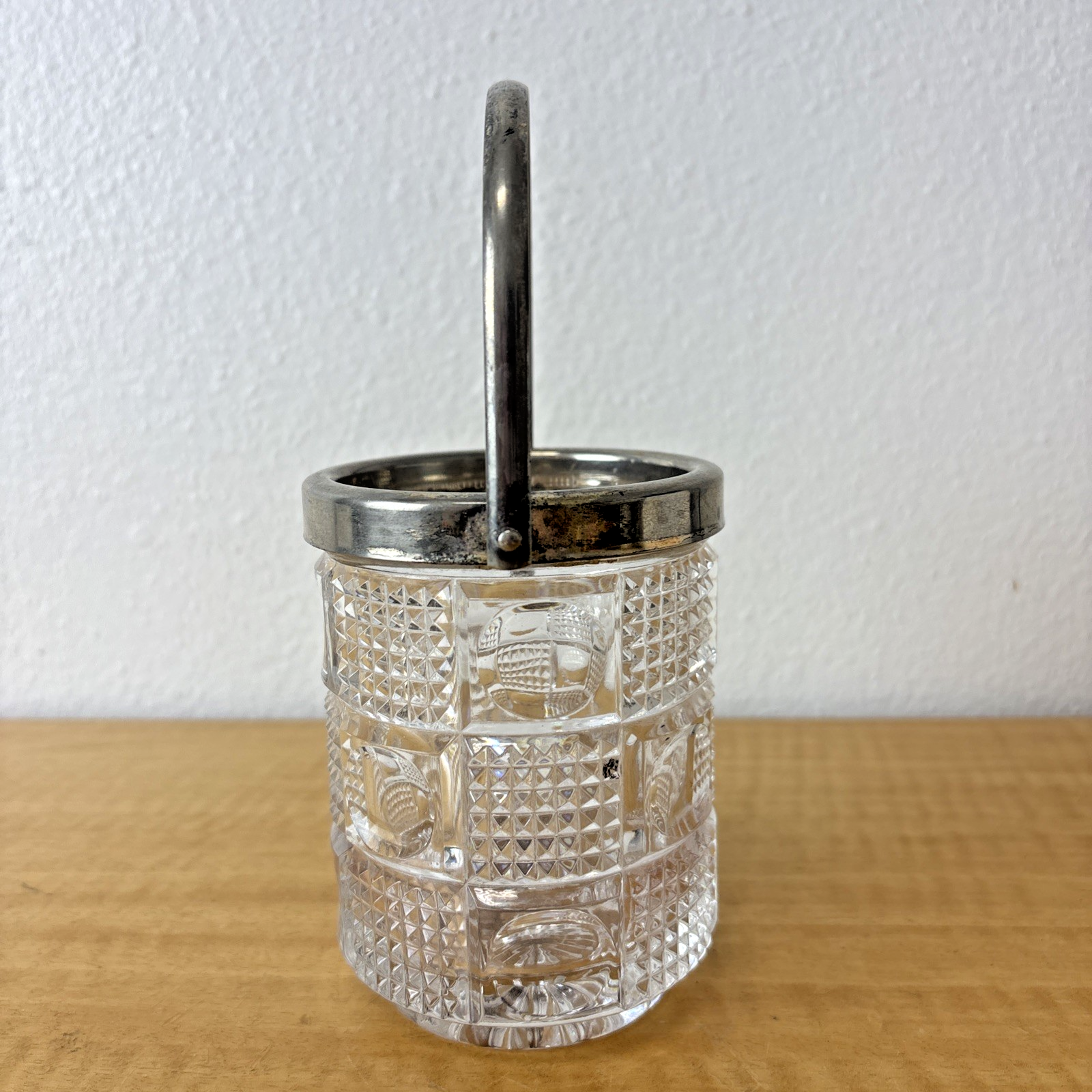 Antique EAPG Tobacco Jar / Pencil Holder / Planter Silverplate Handle