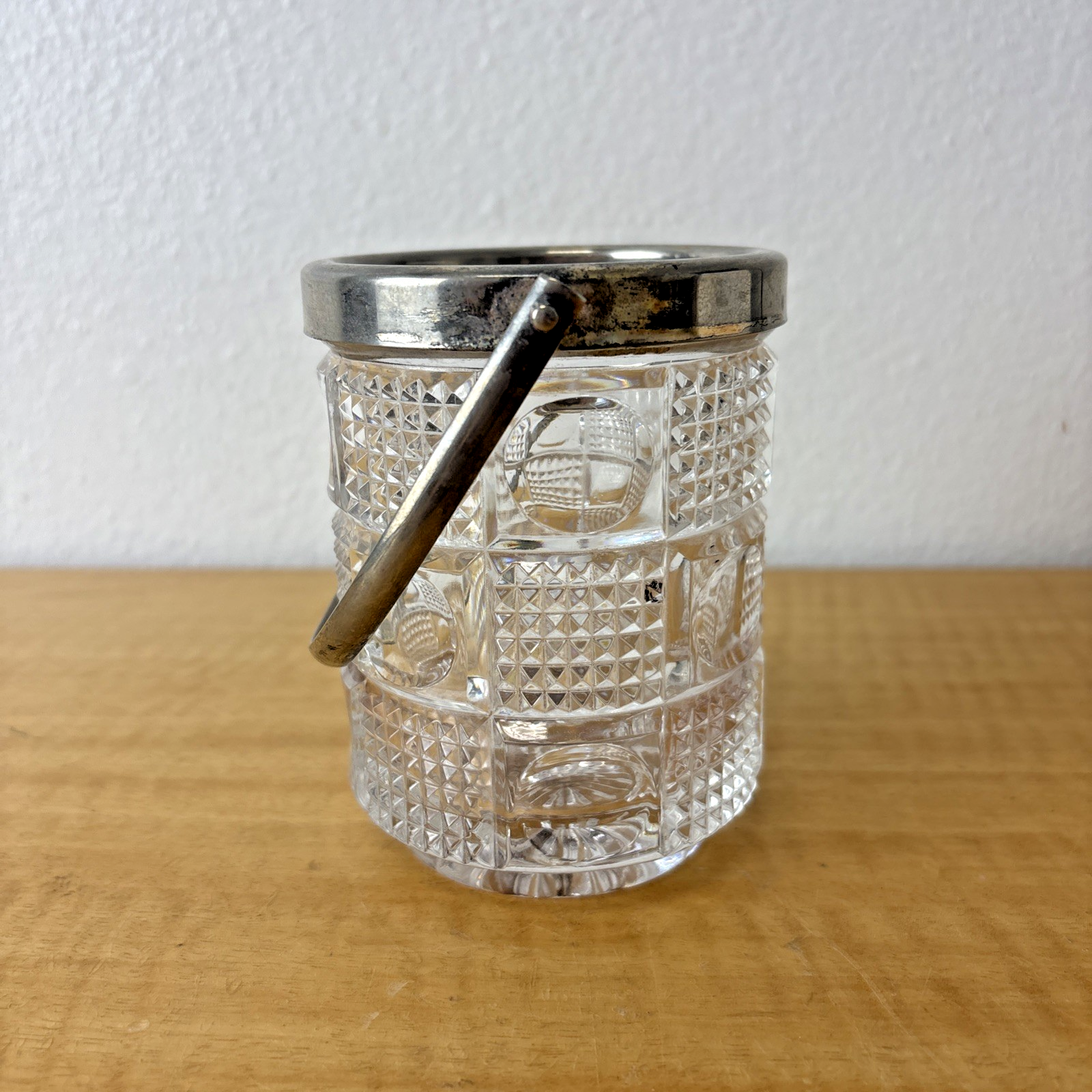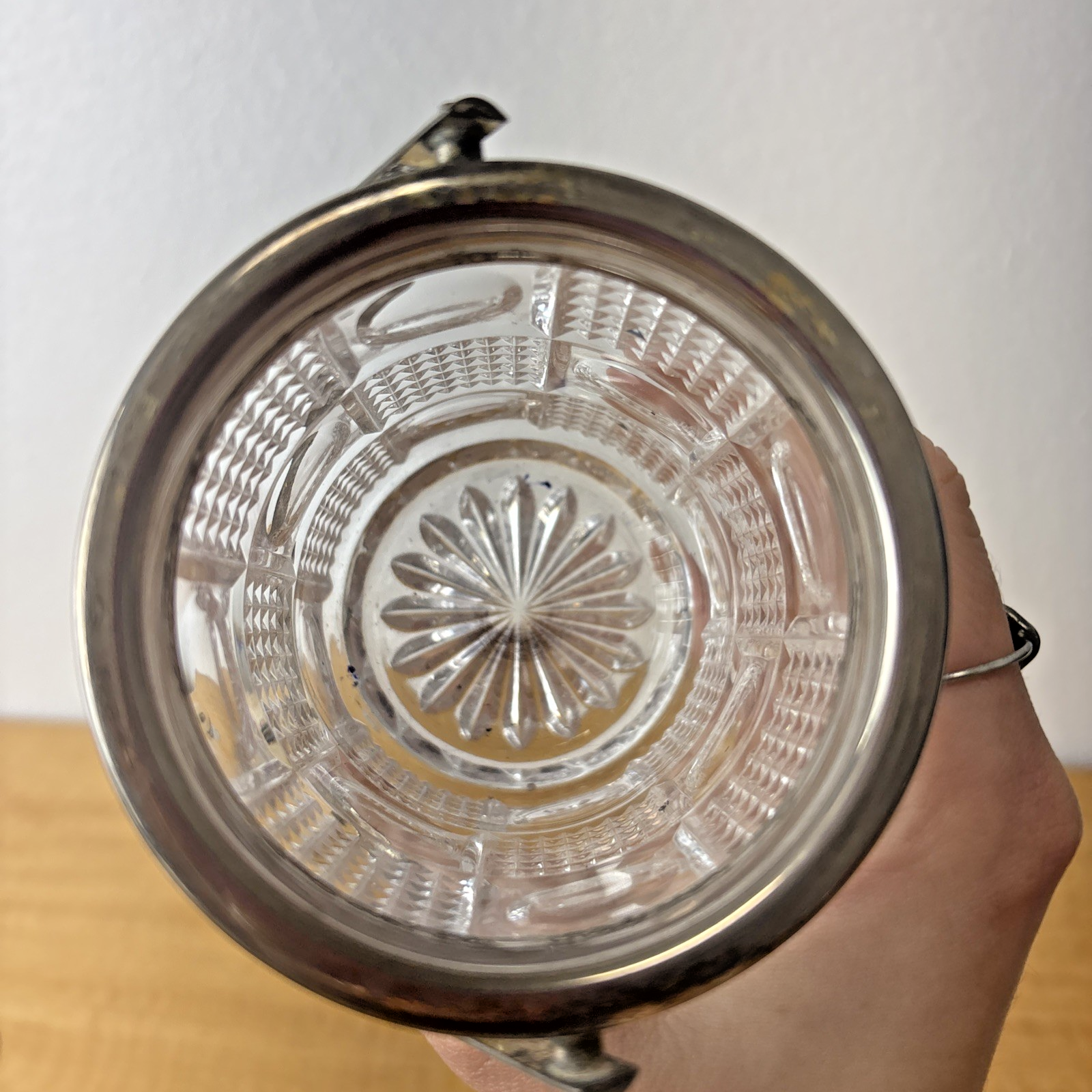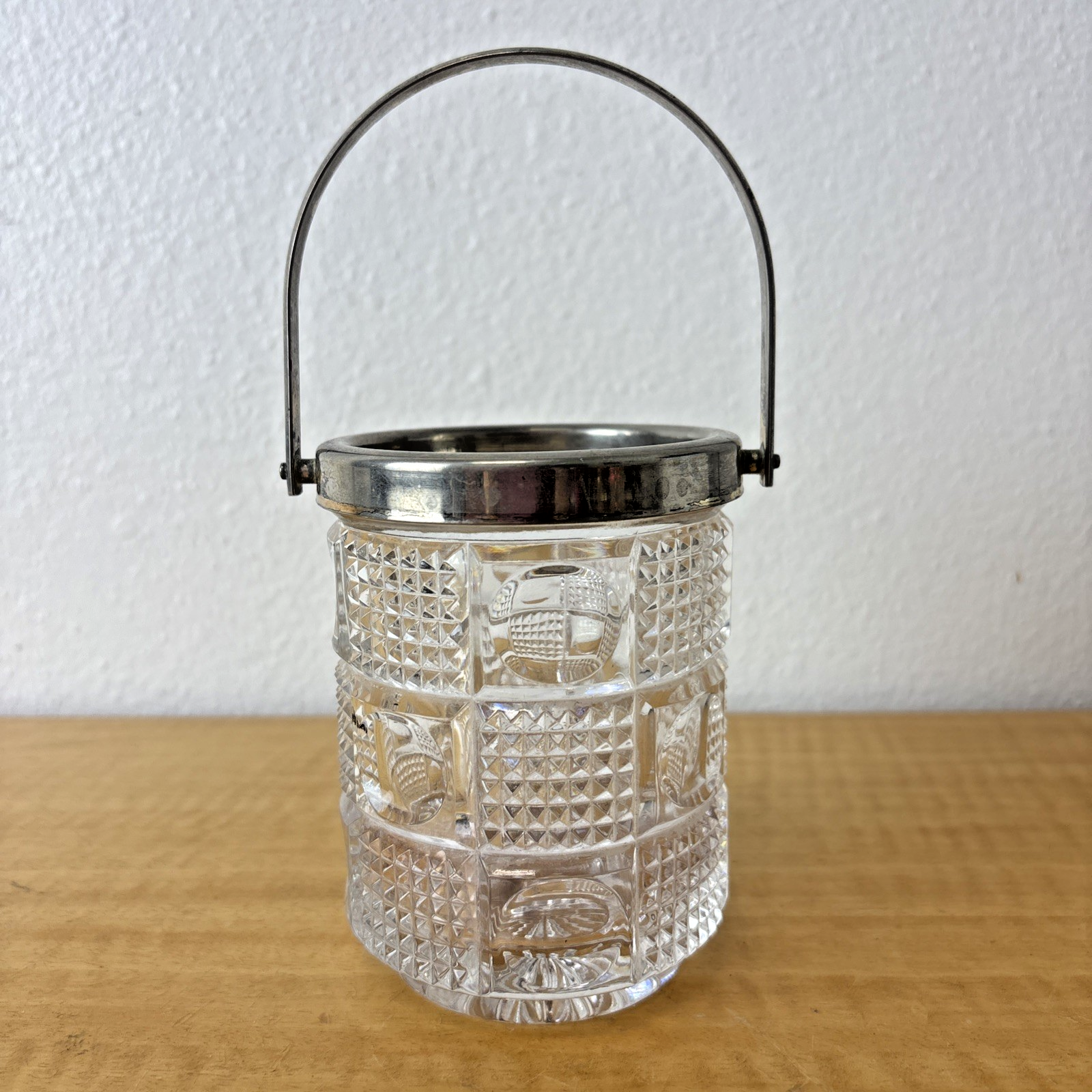 Antique EAPG Tobacco Jar / Pencil Holder / Planter Silverplate Handle