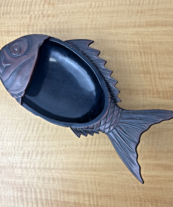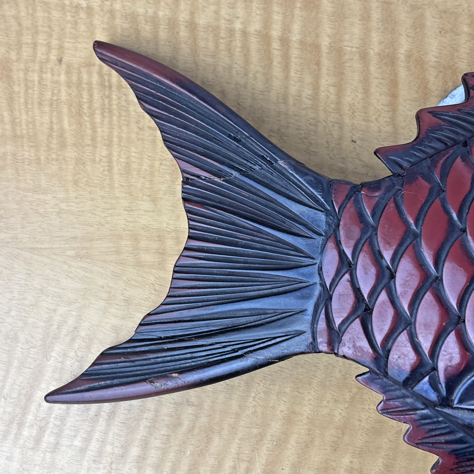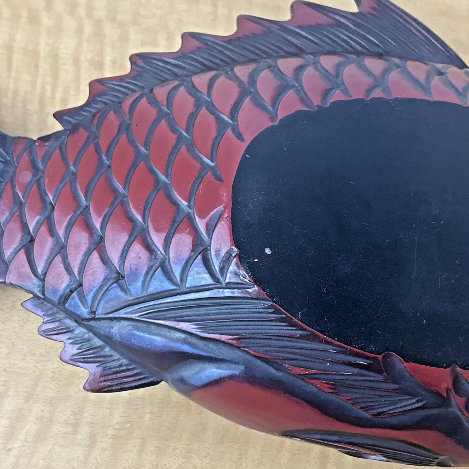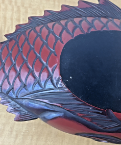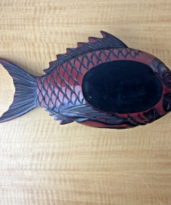 Antique Japanese Wooden Candy box Hand carving with Laquer SEA BREAM No Lid