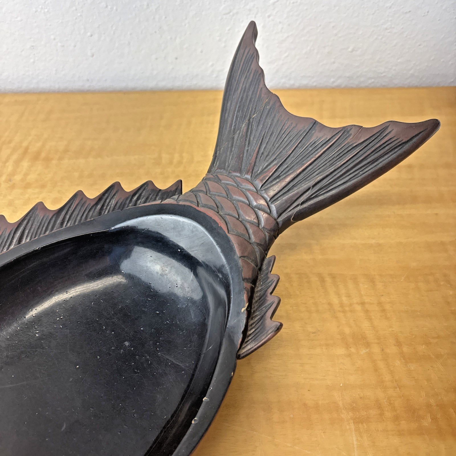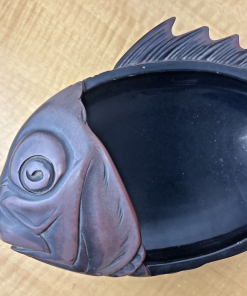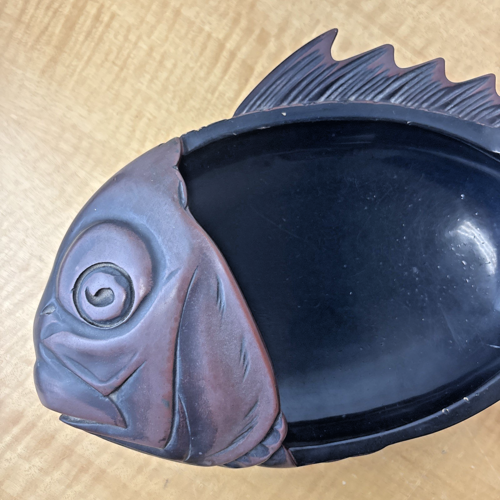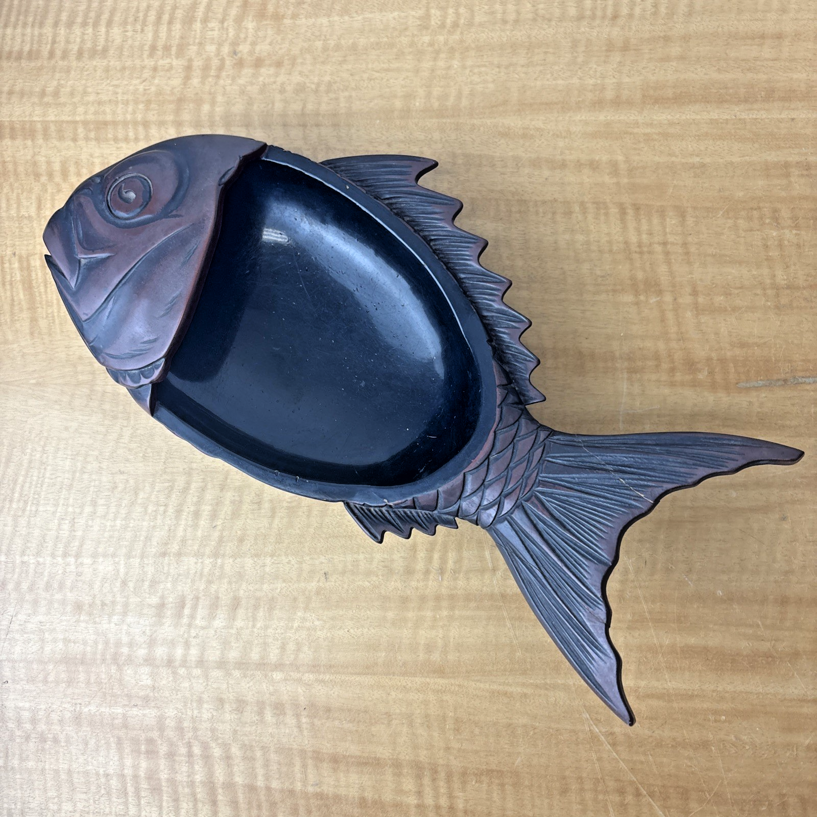 Antique Japanese Wooden Candy box Hand carving with Laquer SEA BREAM No Lid