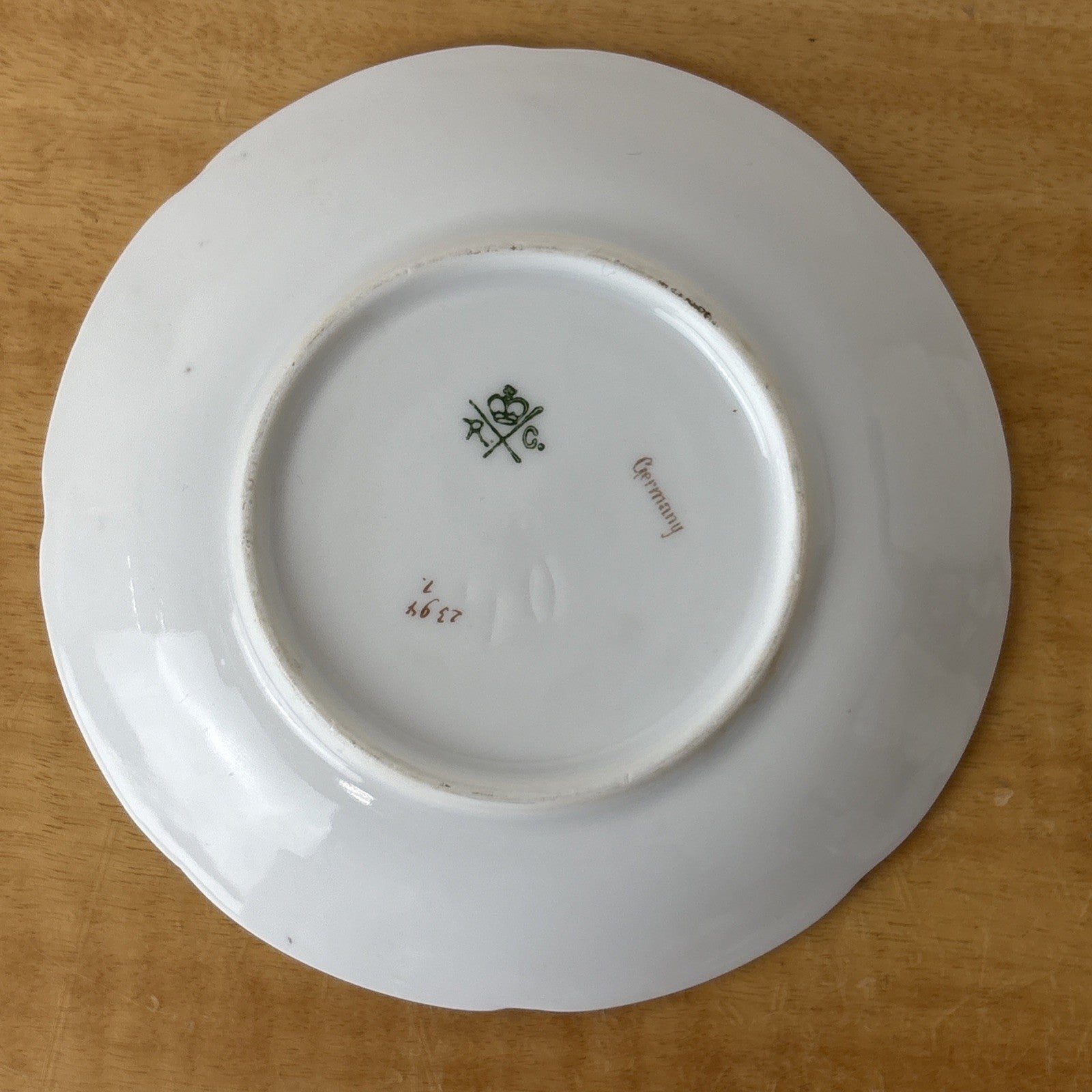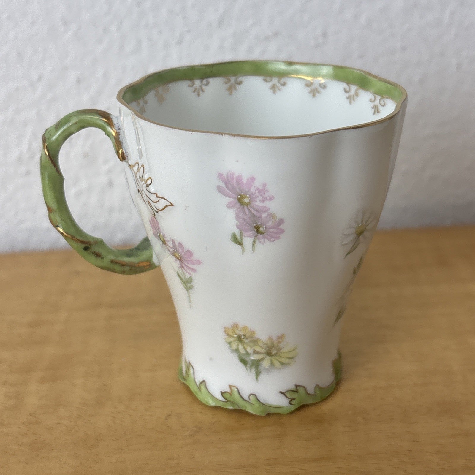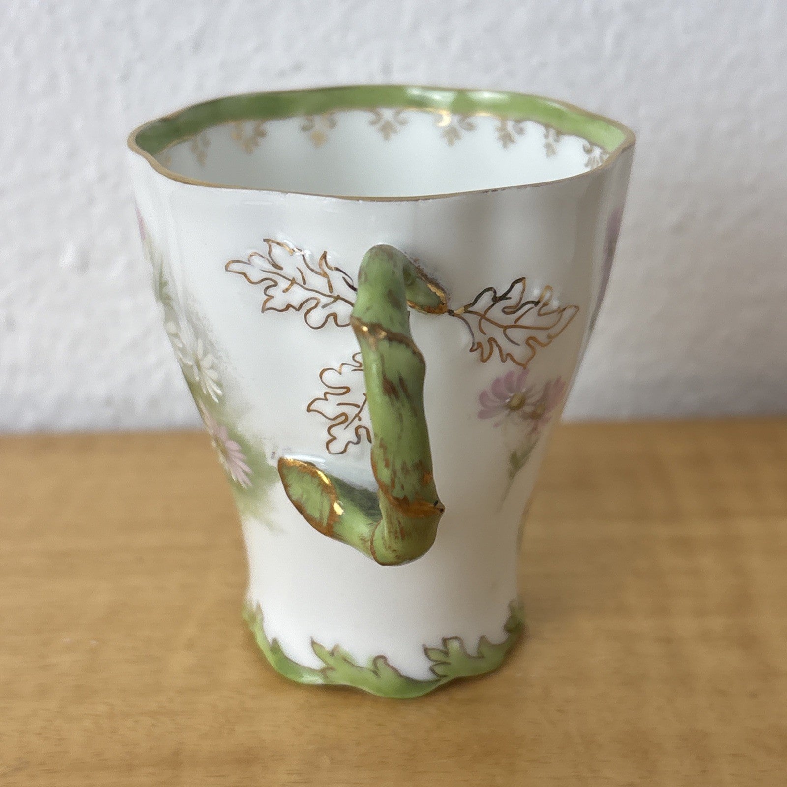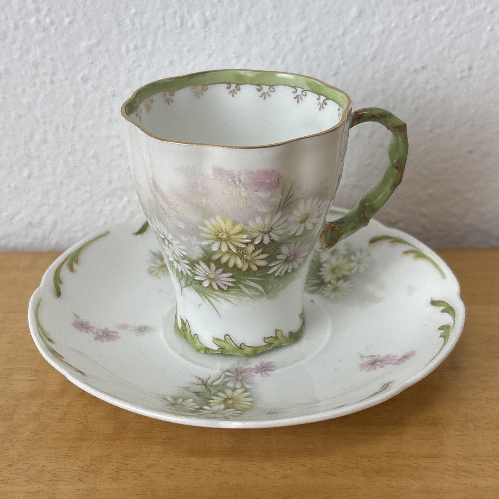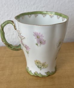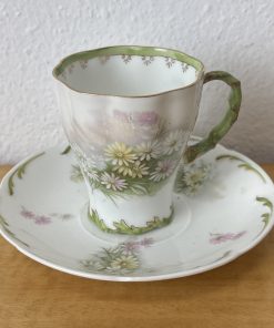Antique Philip Rosenthal Tea Cup and Saucer Green and Pink – R C Crown Mark