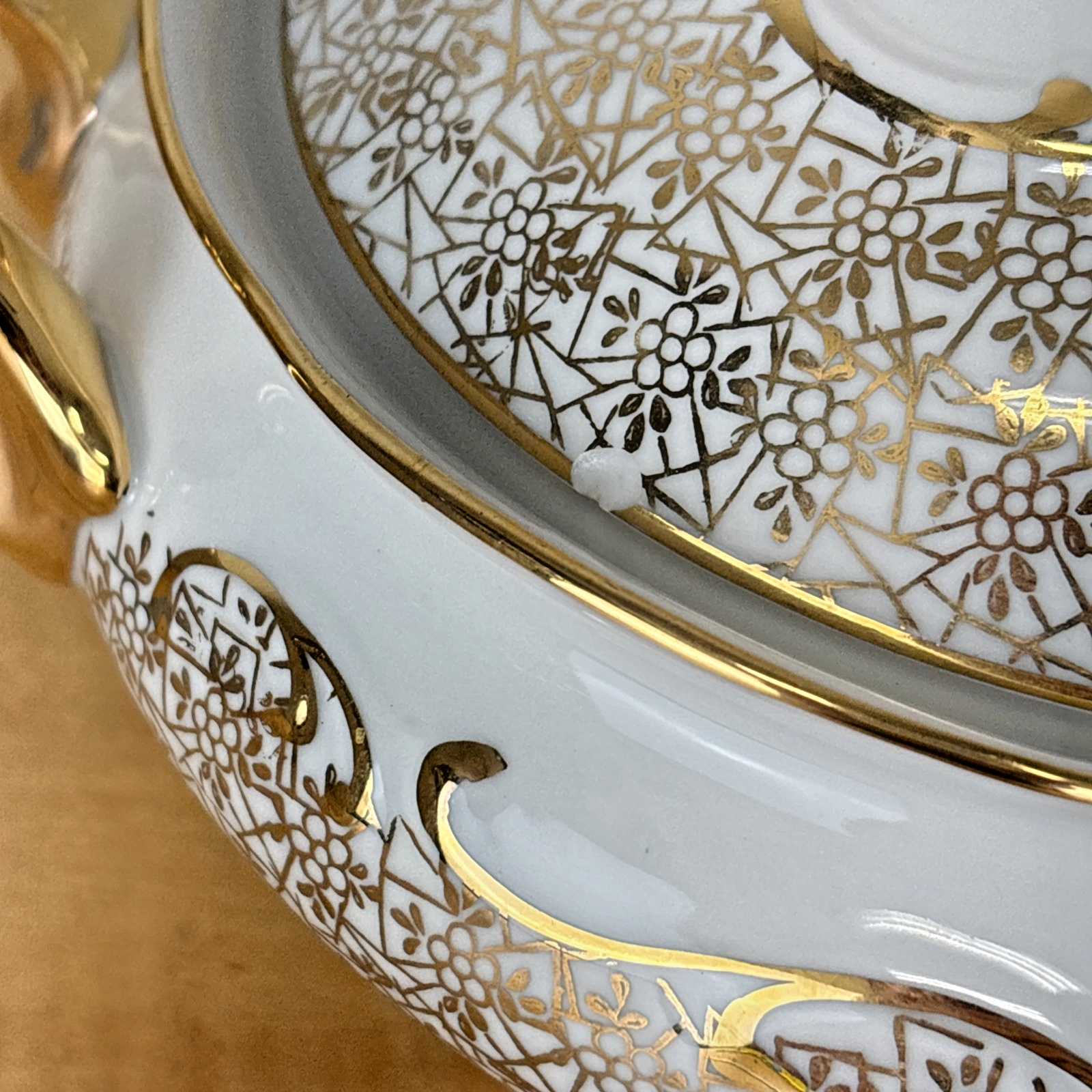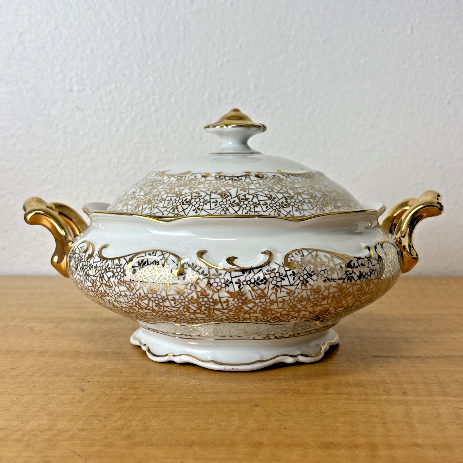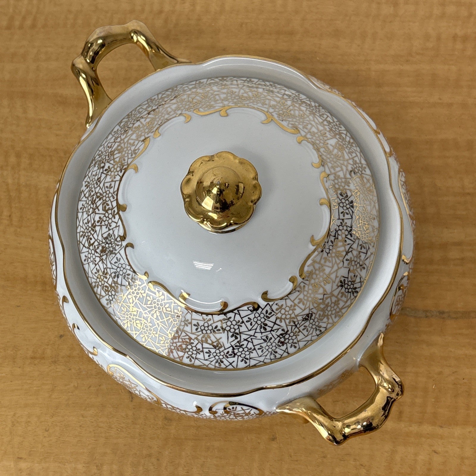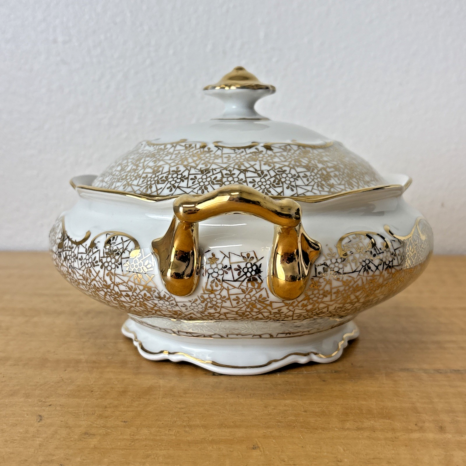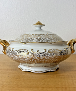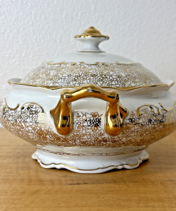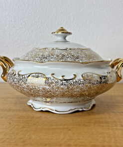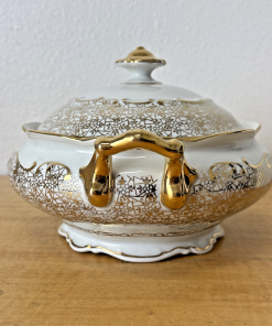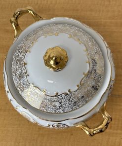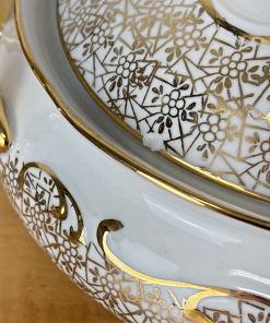 Antique PMB House of Dresden Gold Filigree Round Covered Vegetable Serving Dish